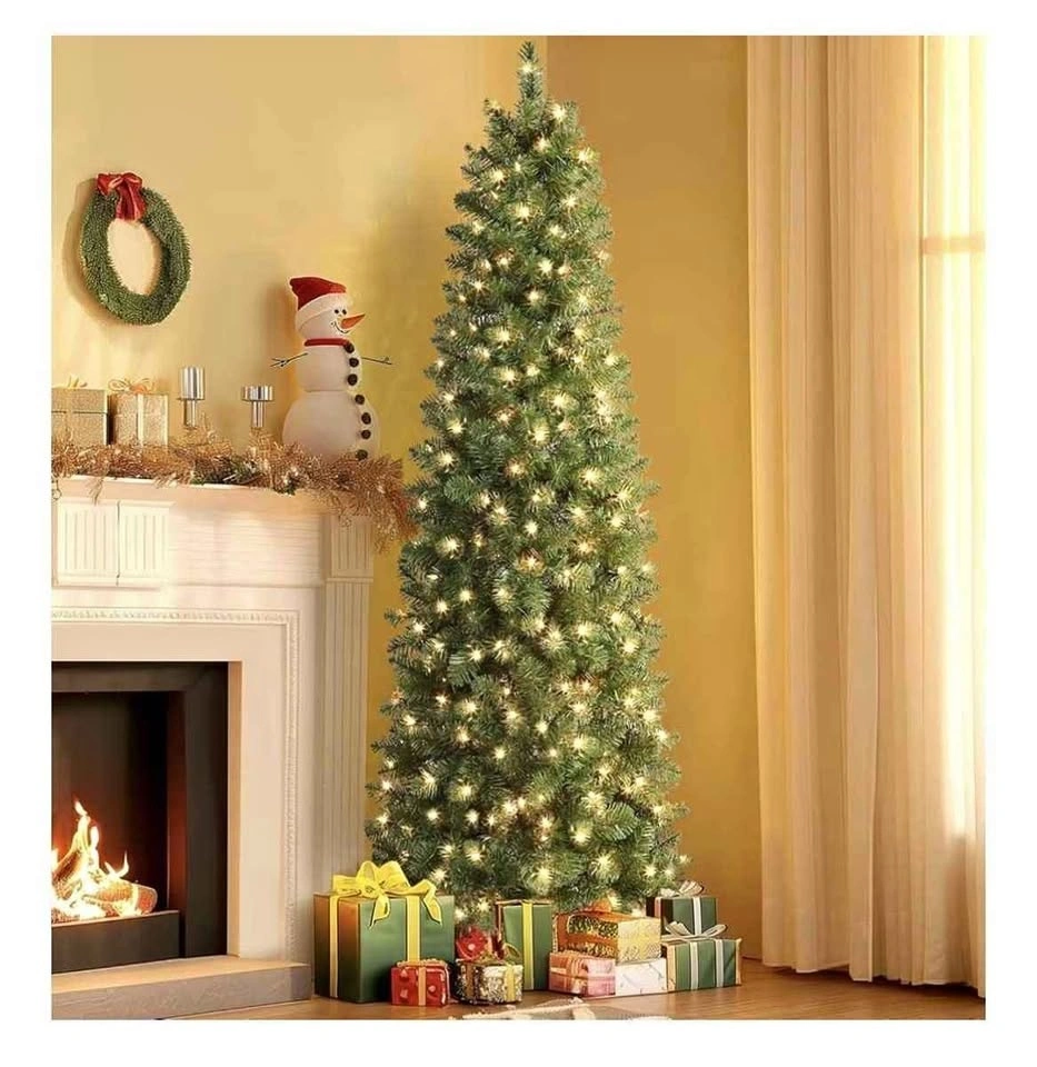 SHareconn 6ft Prelit Artificial Hinged Slim Pencil Christmas Tree with Warm White Lights, Full Branch Tips, Green. MSRP: $90.00 + tax. Feel free to message if you have any questions!