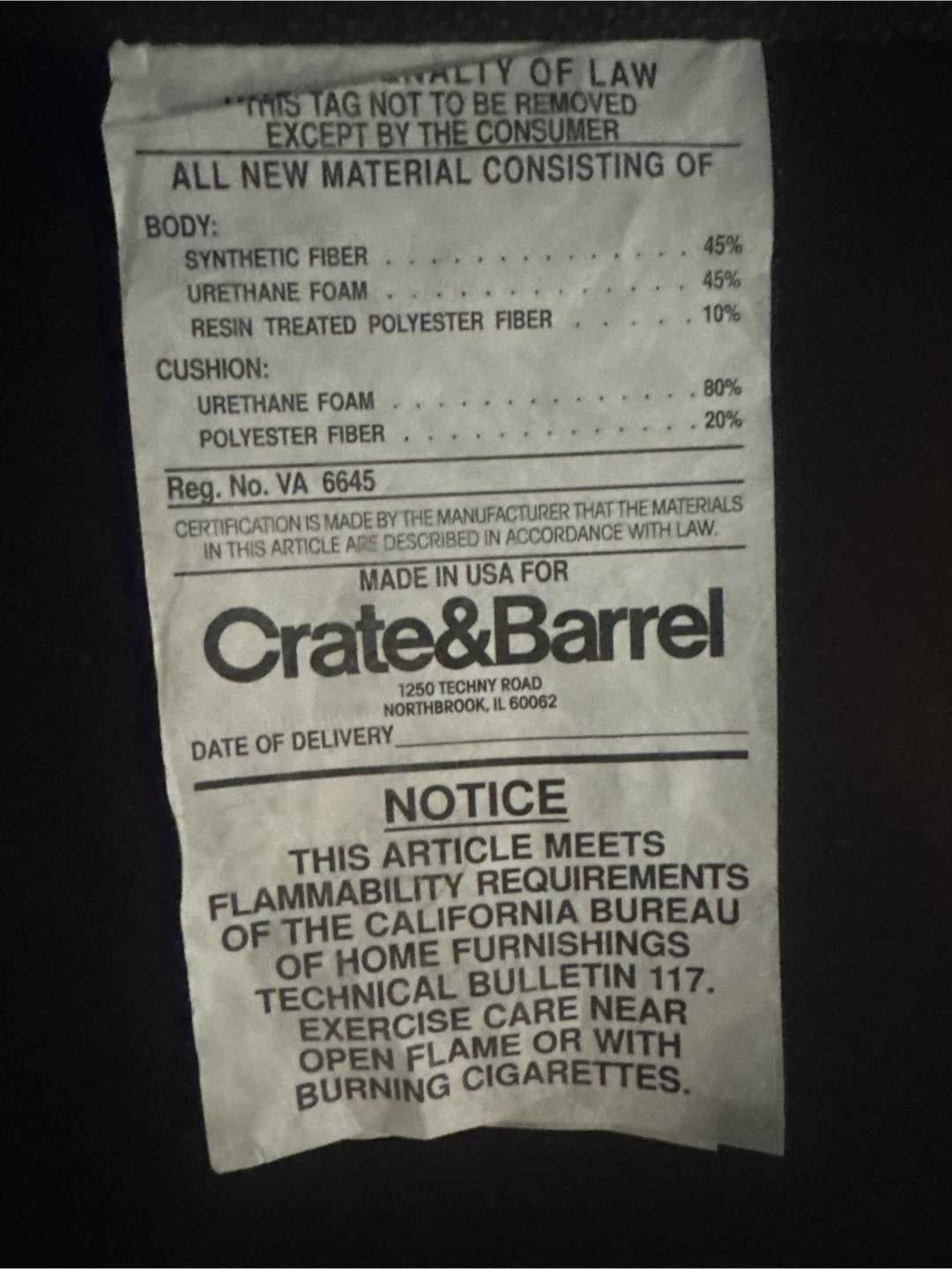 3 set sofa This is a Crate & Barrel upholstered headboard. It's filled with synthetic fiber, urethane foam, and polyester fiber. This headboard is perfect for a bedroom looking for a touch of comfort. Smoke free, pet free movie sale.