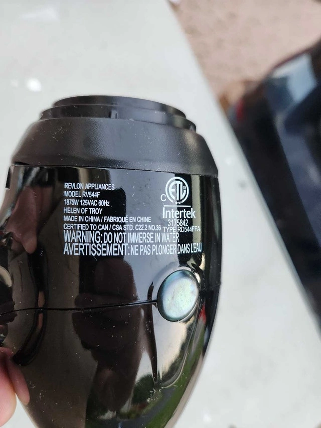 Get ready to say goodbye to bad hair days with this Revlon hair dryer! This used Revlon hair dryer delivers powerful airflow and consistent heat, making it perfect for all hair types. This model is 1875W, 125VAC 60Hz, model RV544F. The dryer is in good working condition, ready to help you achieve salon-quality results at home. Brand: Revlon, Model: RV544F, Power: 1875W. Cash accepted.