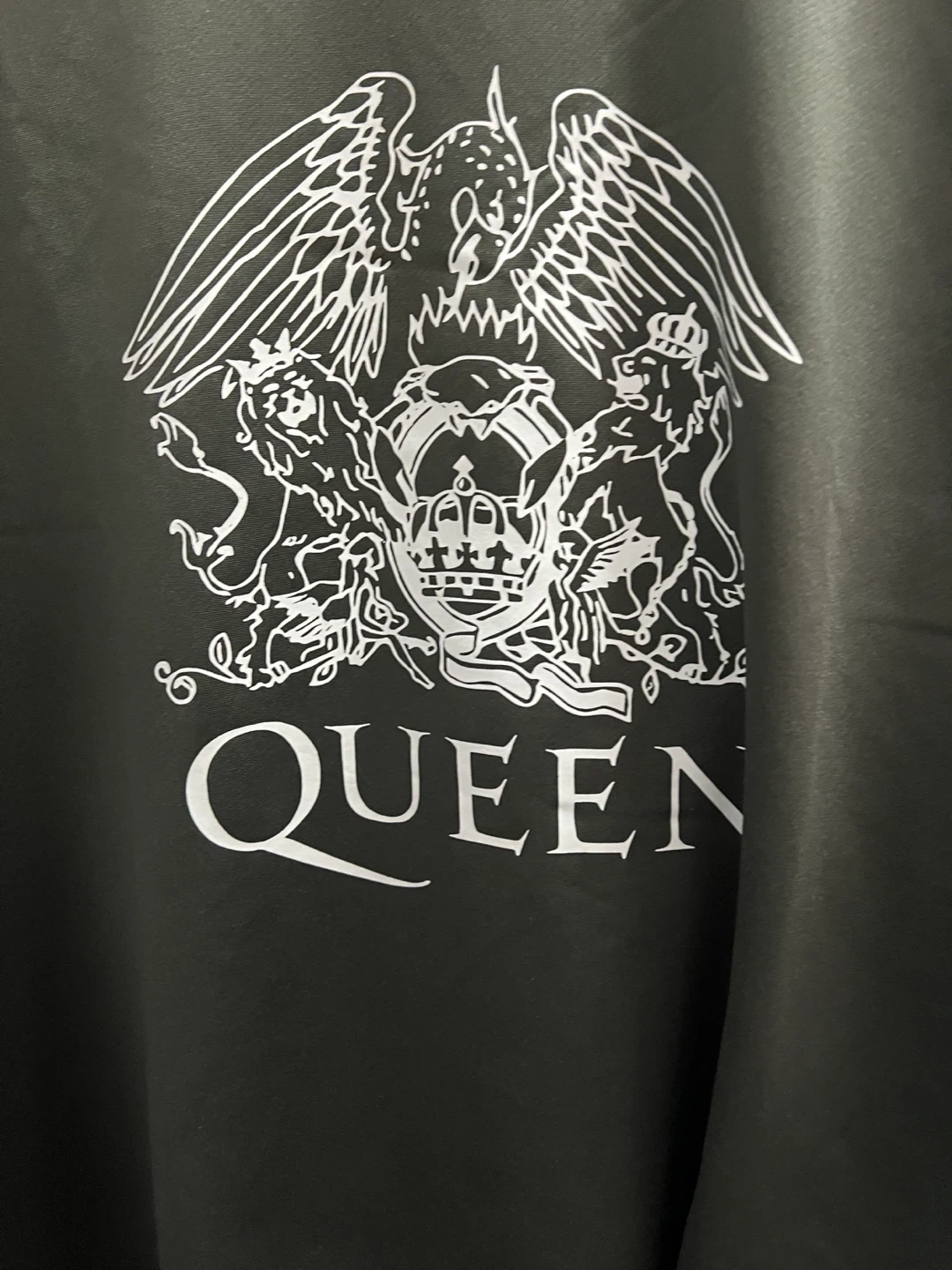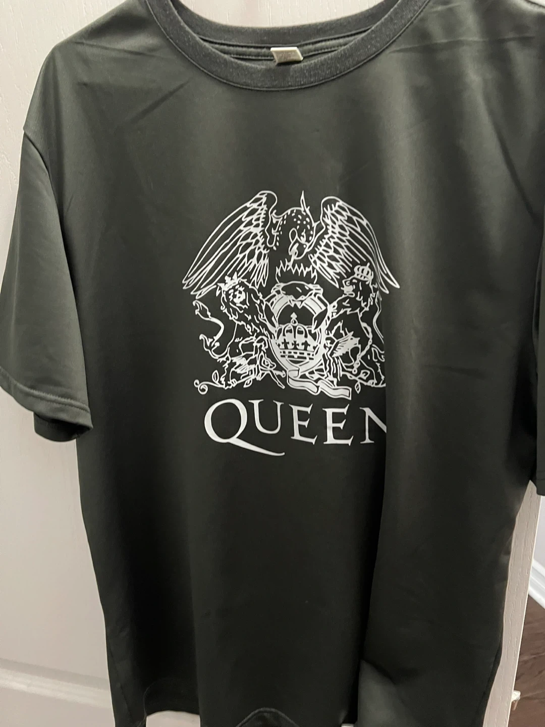 Selling a Queen band t-shirt in size XL! The shirt features a large white print of the Queen crest on the front. The material is polyester, so it's lightweight and comfortable to wear