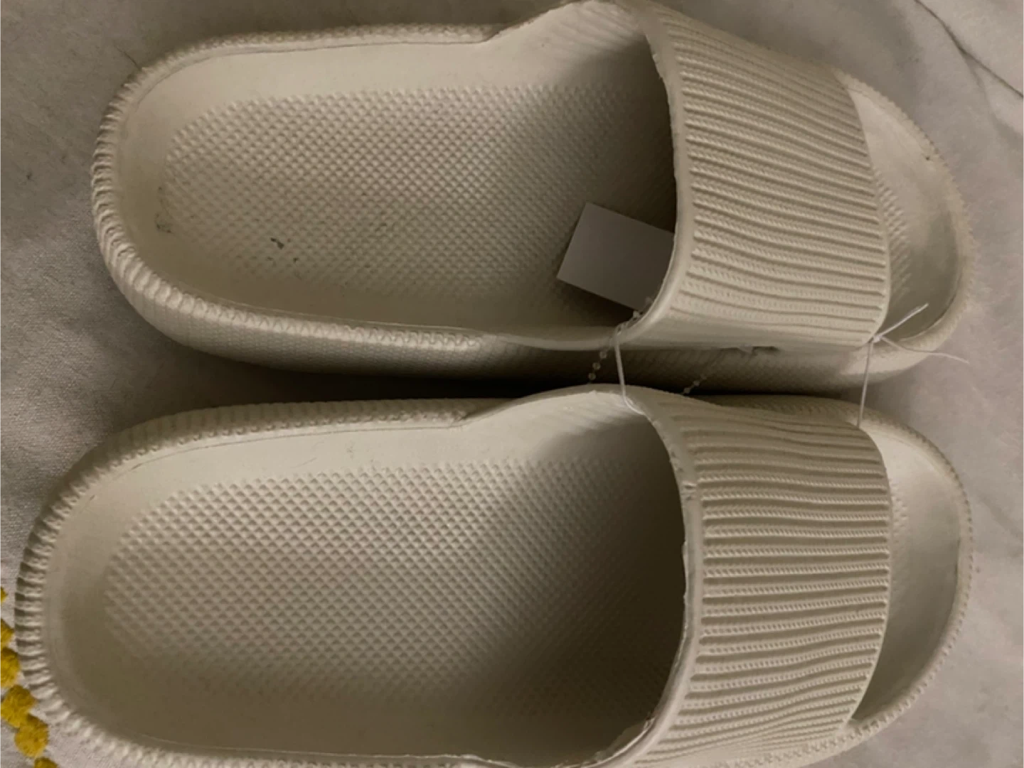 These comfy white pillow slides are perfect for wearing around the house or running quick errands! They're in great condition and ready for a new owner. They are lightweight and portable