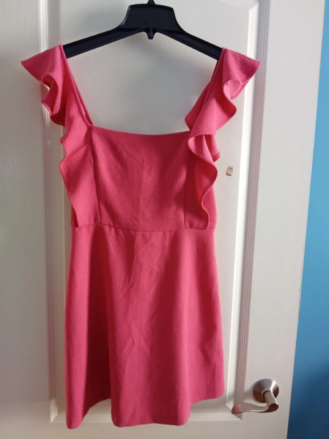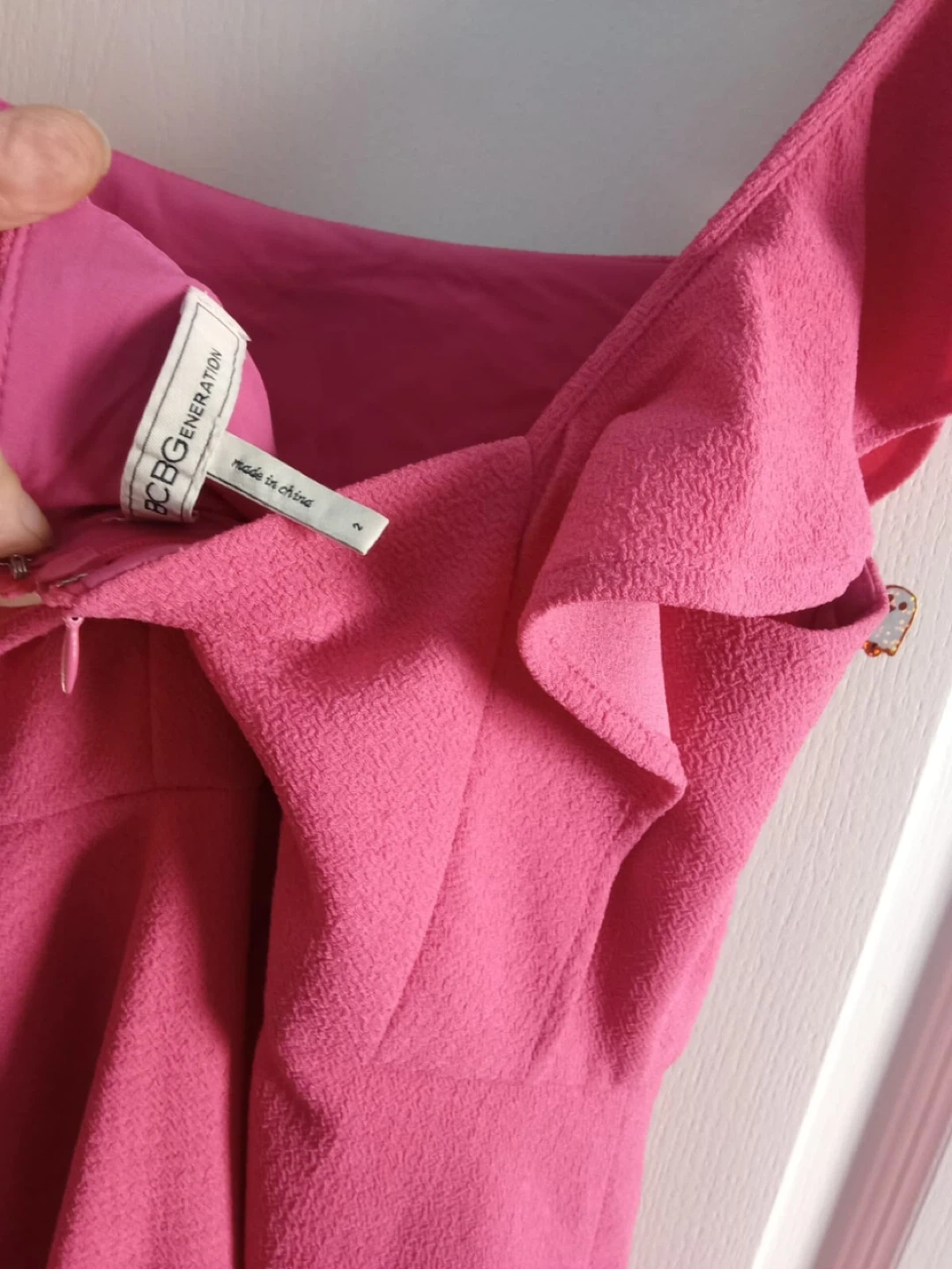 10Selling a cute BCBG Generation dress in a vibrant pink colour! It's a size 2 and features a stylish ruffled shoulder design. Perfect for a night out or a special occasion