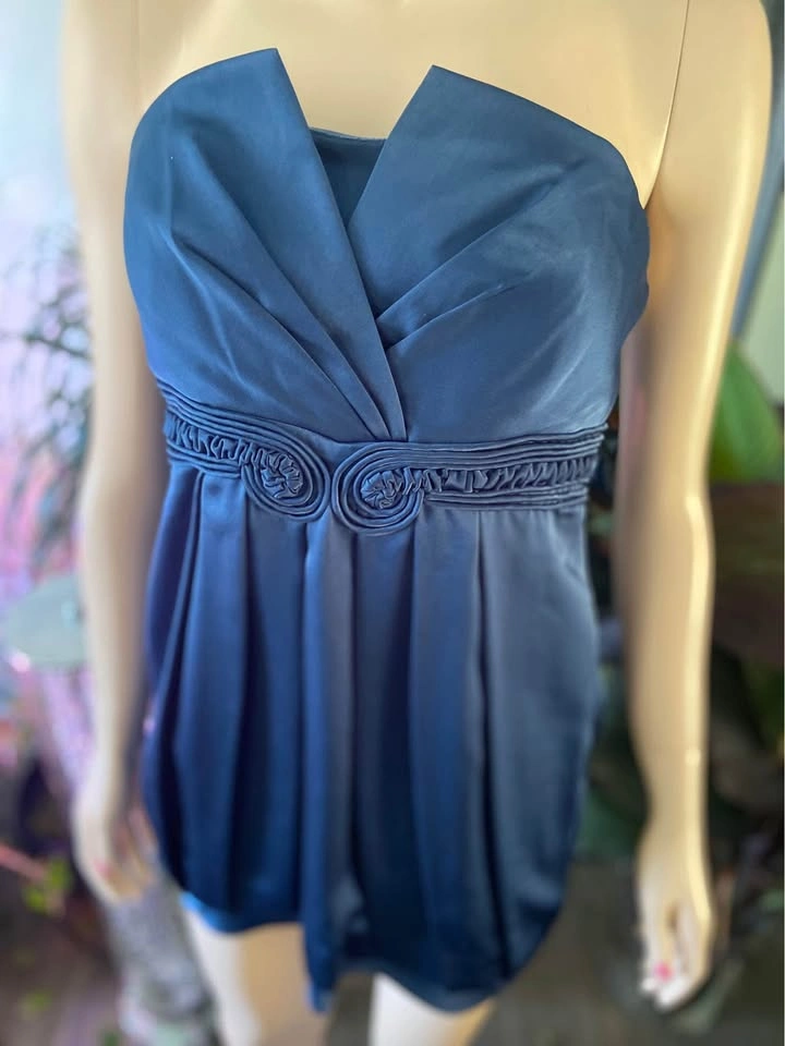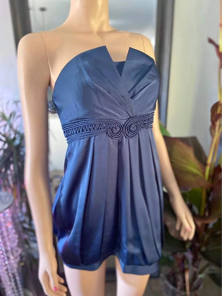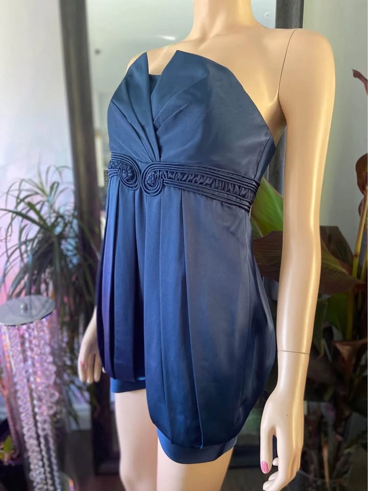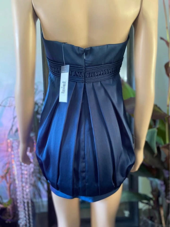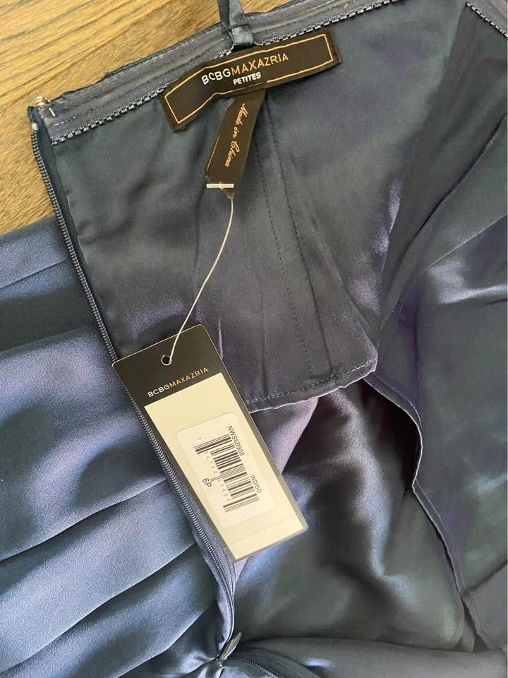 99NWT BCBG Max Azria blue satin pleated strapless formal dress, petites size 6 (original retail $298). Brand new with tags attached, from a smoke-free home. Manufacturer: BCBG Max Azria Size: 6P Manufacturer Color: Indigo Blue Style Type: Semi-Formal Dress Collection: BCBG Maxazria Petite Sleeve Length: Strapless Silhouette: Empire Closure: Hidden back zipper Dress Length: Above knee, mini Total Length: 23 inches Fabric Type: Satin Material: 100% Polyester Specialty: Padded bust, full upper boning & rubber grip Pick up north end St Catharines Thanks for looking!