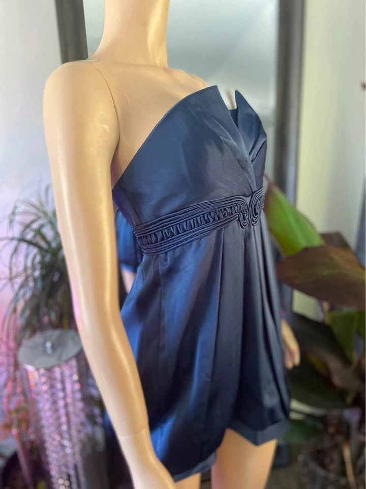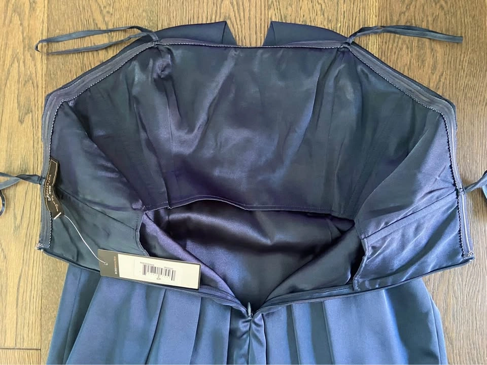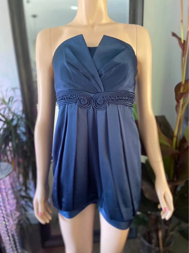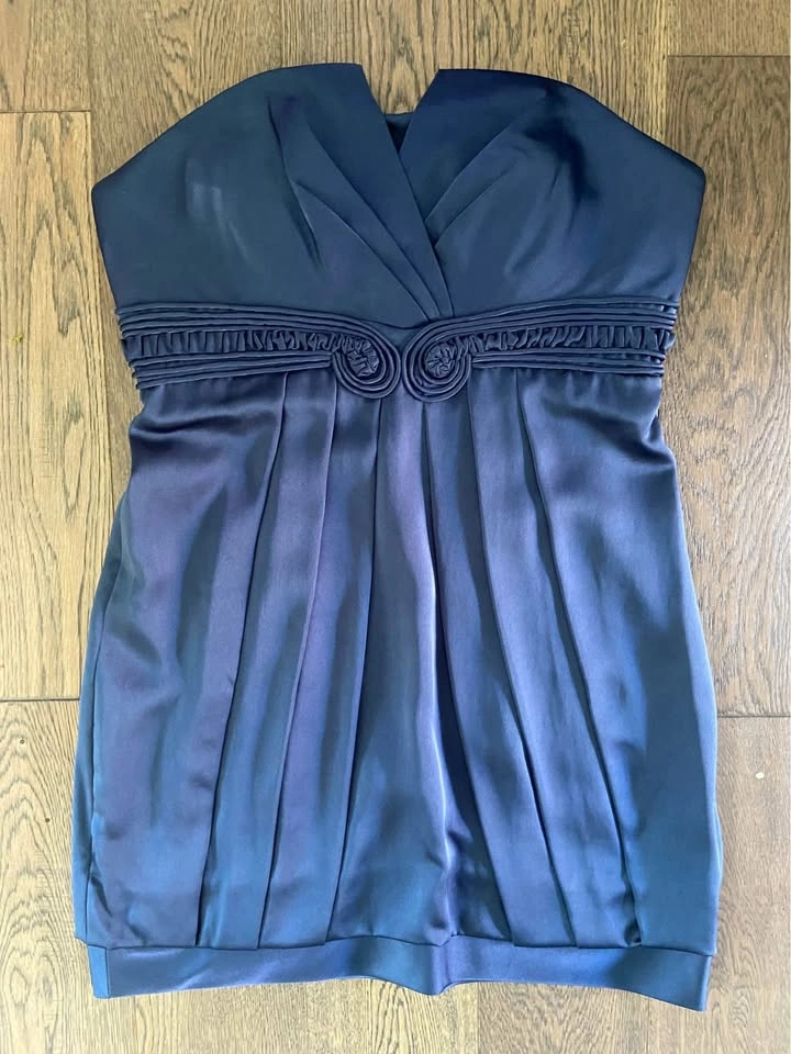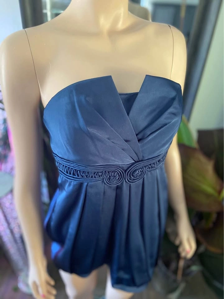 99NWT BCBG Max Azria blue satin pleated strapless formal dress, petites size 6 (original retail $298). Brand new with tags attached, from a smoke-free home. Manufacturer: BCBG Max Azria Size: 6P Manufacturer Color: Indigo Blue Style Type: Semi-Formal Dress Collection: BCBG Maxazria Petite Sleeve Length: Strapless Silhouette: Empire Closure: Hidden back zipper Dress Length: Above knee, mini Total Length: 23 inches Fabric Type: Satin Material: 100% Polyester Specialty: Padded bust, full upper boning & rubber grip Pick up north end St Catharines Thanks for looking!