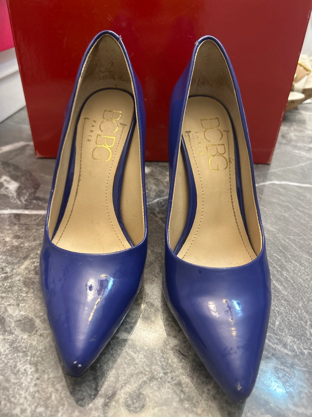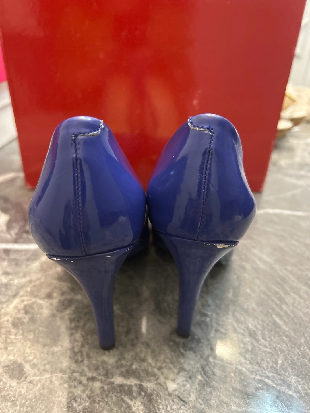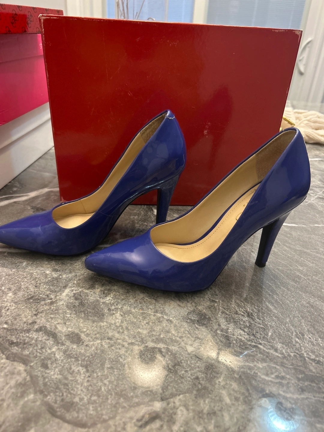 405Beautiful blue patent leather heels. Pointed toe, stiletto heel. Size 6