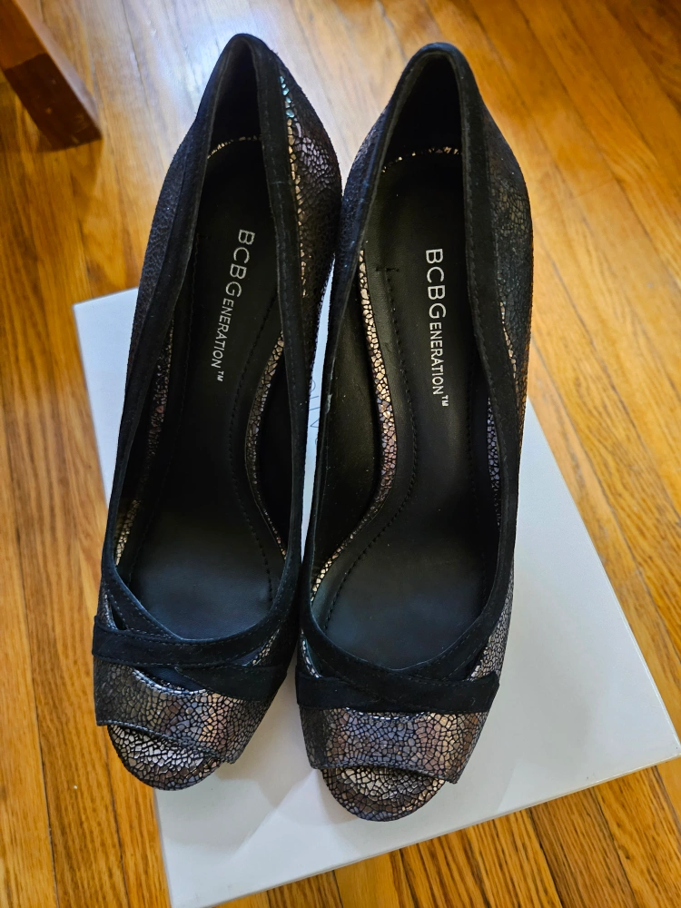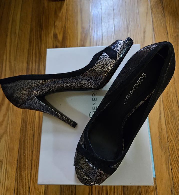 Brand new suede peep toe pump Color: Iridescent black Size: 7.5 Heels: 4.25 inch