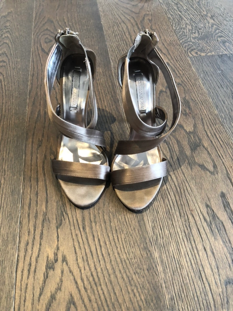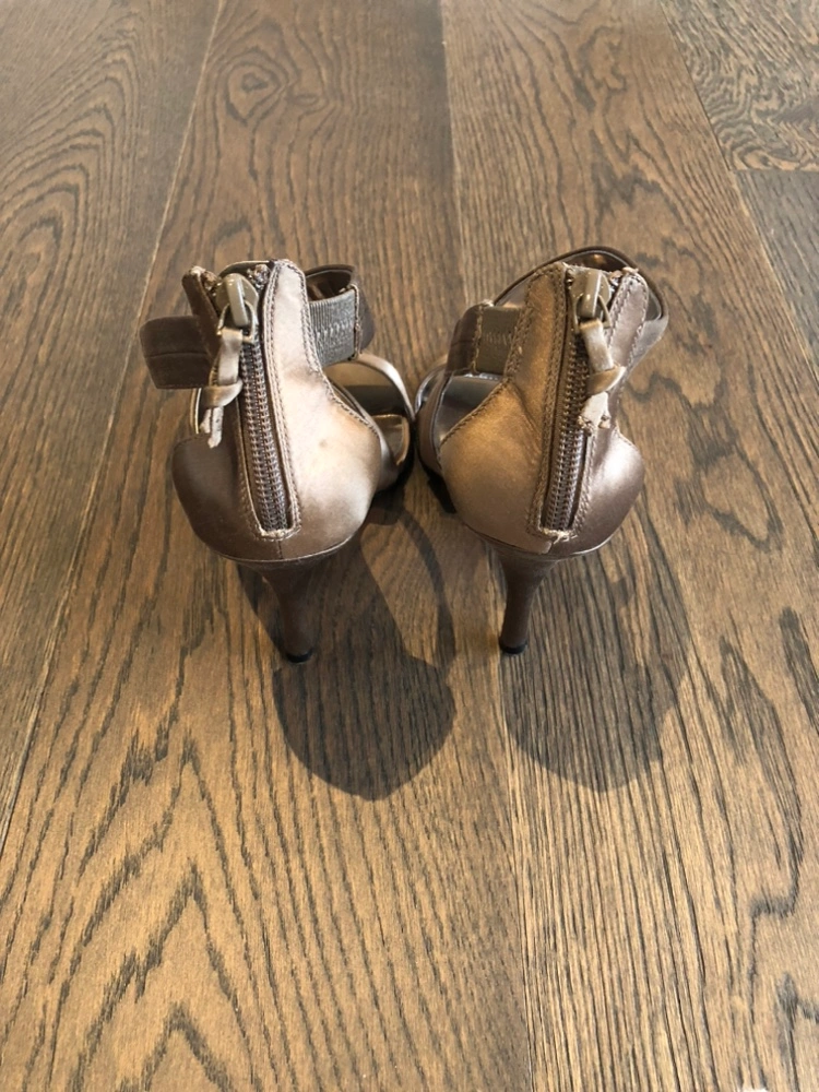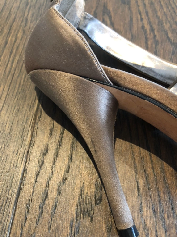 10Satin like material. Zipper detail at back. Minor scuff mark on left heel as seen on last pic.