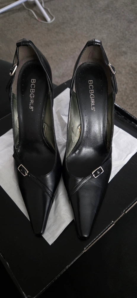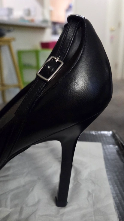 121A pair of black pointed-toe heels. High heel design. You can wear these to an important business meeting.