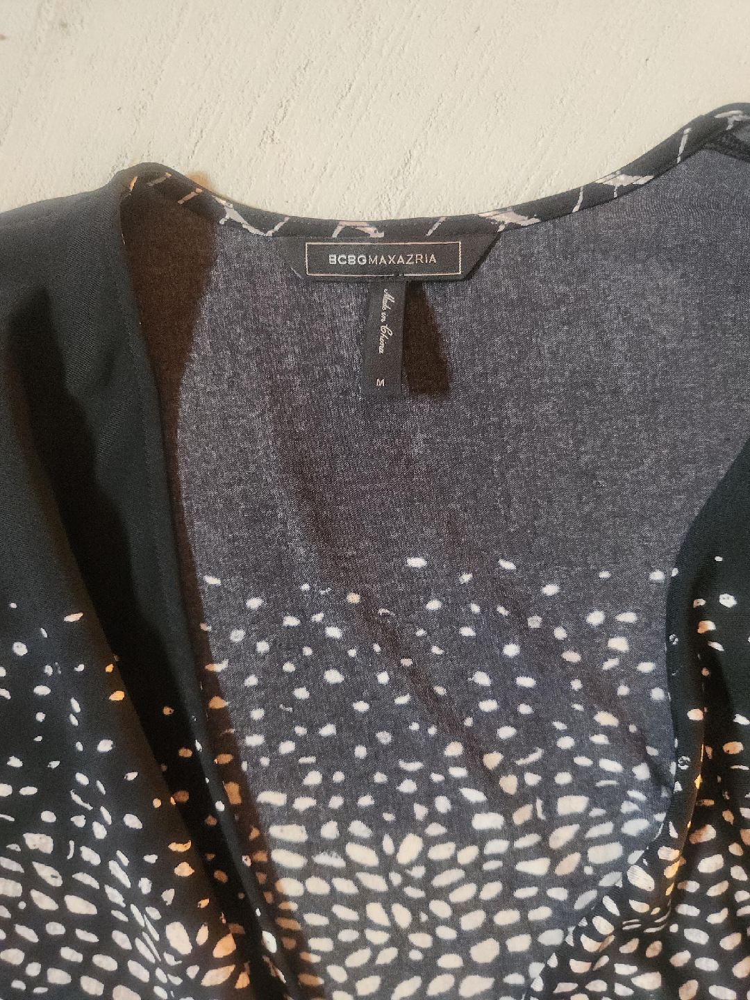 15Selling a cute BCBGMAXAZRIA dress in size medium! It features a stylish black and white pattern. Perfect for a night out or a special occasion!