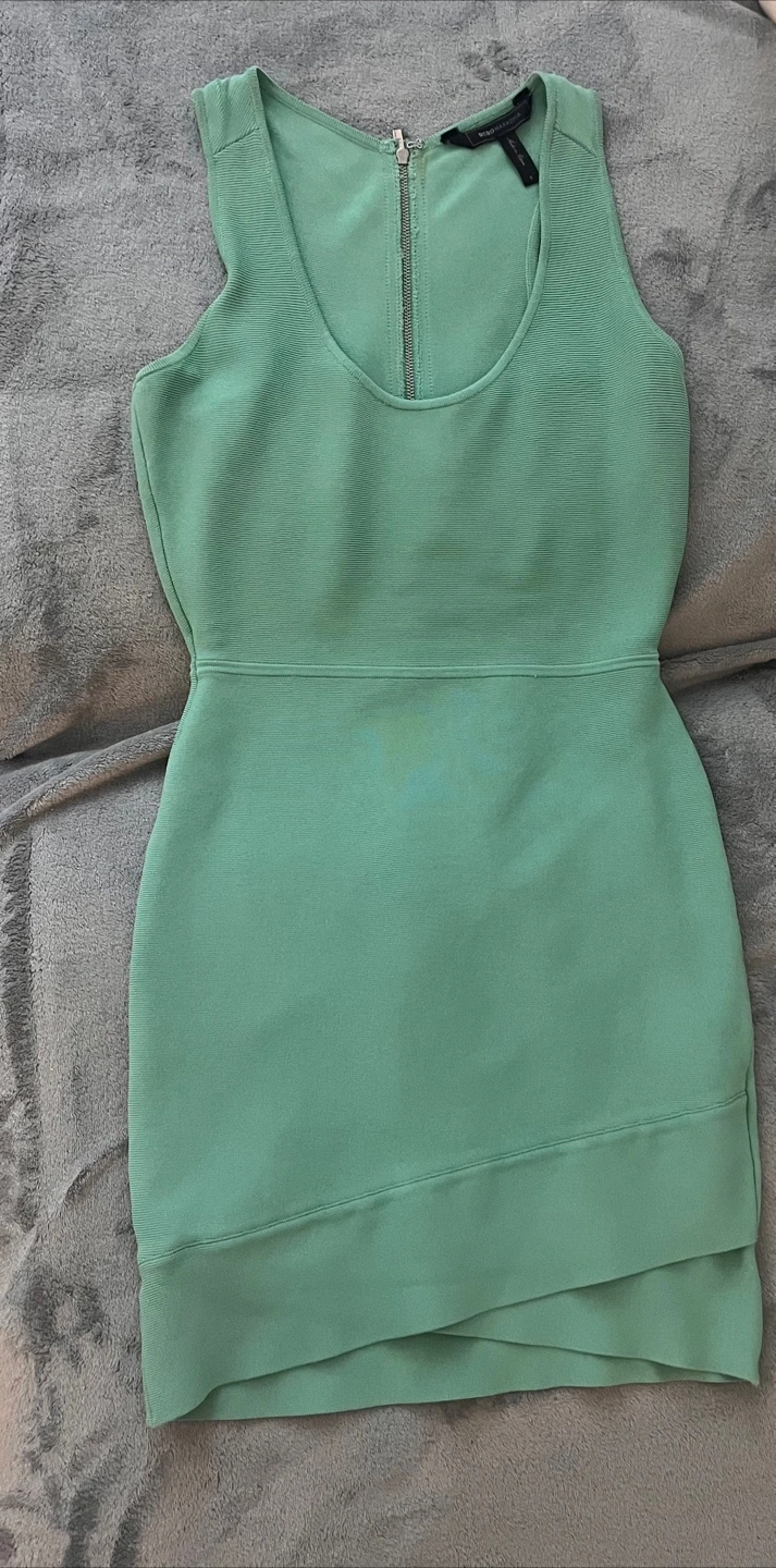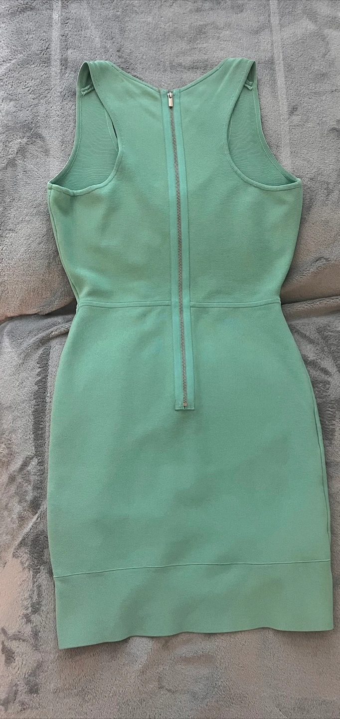 A lovely mint green mini dress from BCBGMAXAZRIA! It features a racerback style and a zipper in the back. Perfect for a night out or a special occasion!