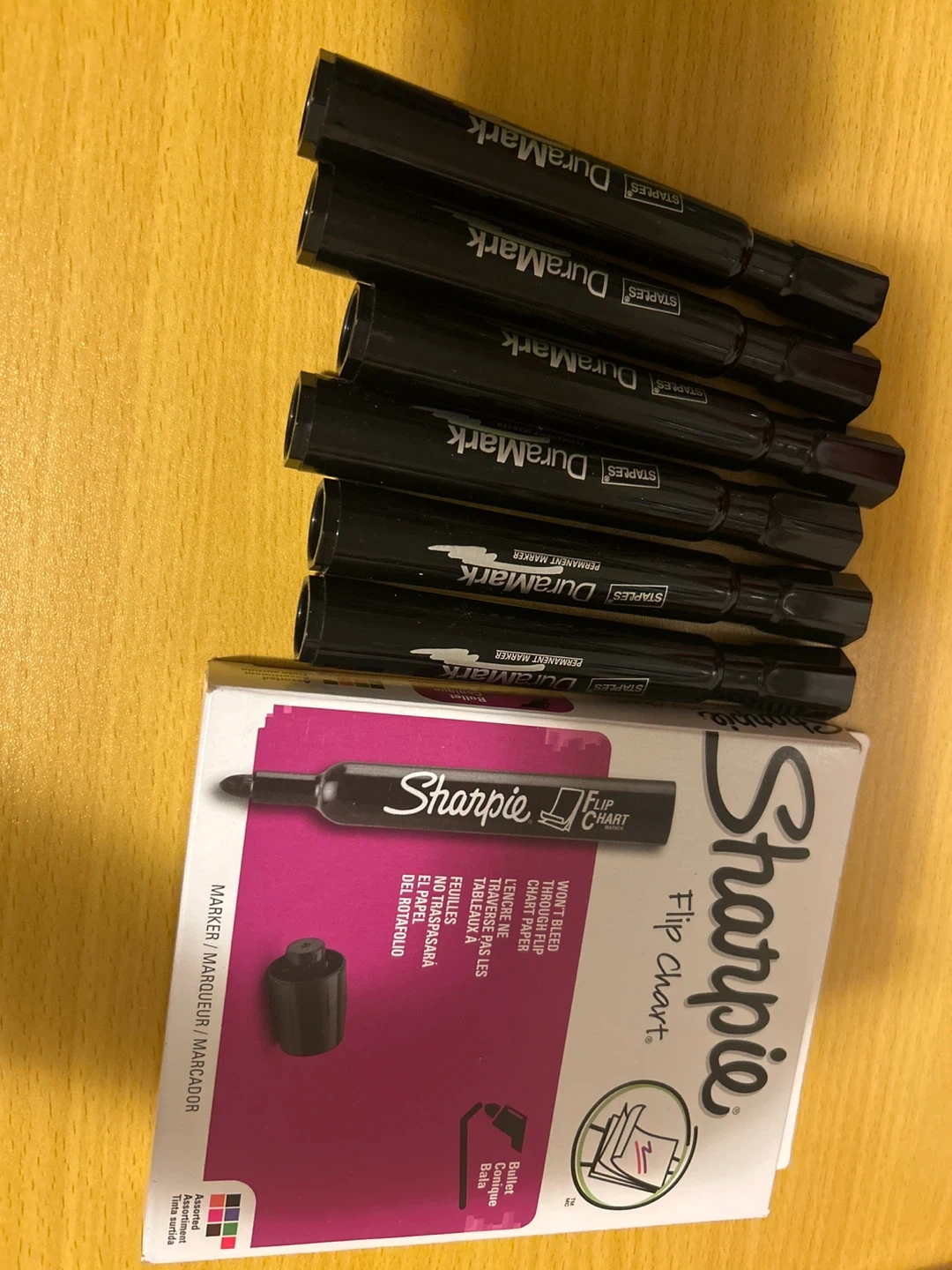 Buy & SellSharpie Flip Chart Markers - BlackSharpie Flip Chart Markers - Black$6This is a pack of black Sharpie Flip Chart markers. They won't bleed through flip chart paper. Bullet tip included.WHERE TO MEETCheck LocationView MapSELLERRome JeanThorncliffe Park80467 reviews0 chats·0 favorites·5 viewsSEND CHAT TO SELLERHi Rome Jean! I’m interested in your listing.Hi Rome Jean! I’m interested in your listing.Get the Karrot app to chatSign In to chat