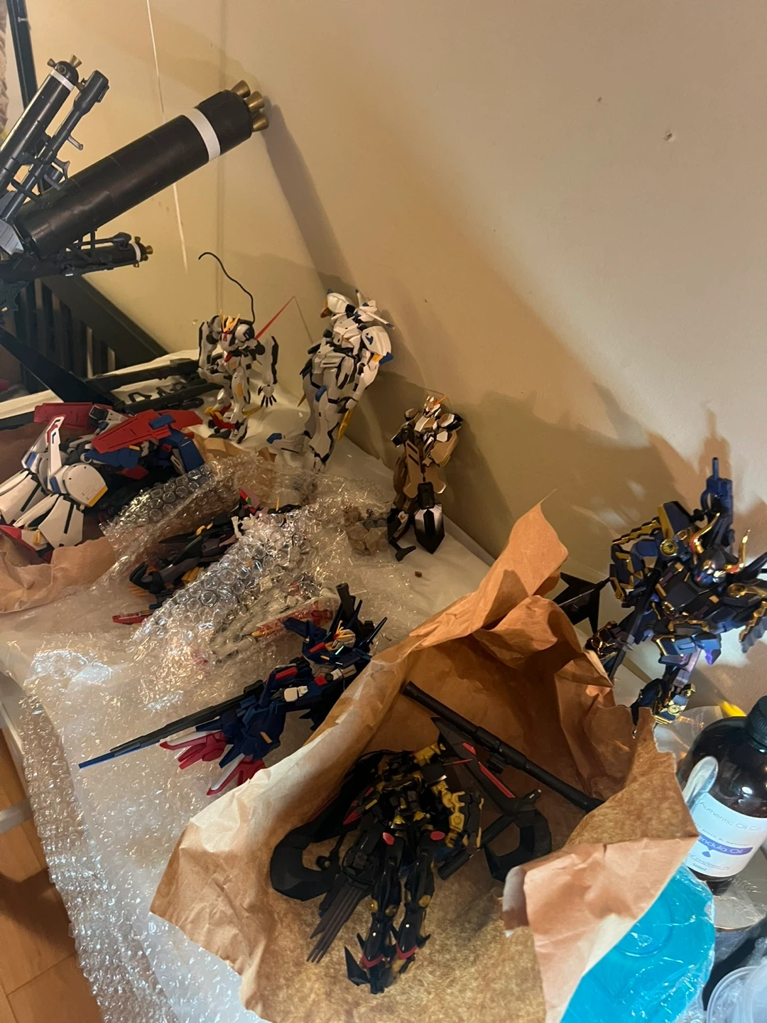 Selling a collection of Gundam model kits. They're partially assembled and in good condition. Perfect for any Gundam enthusiast looking for a project! Totally 10 items.