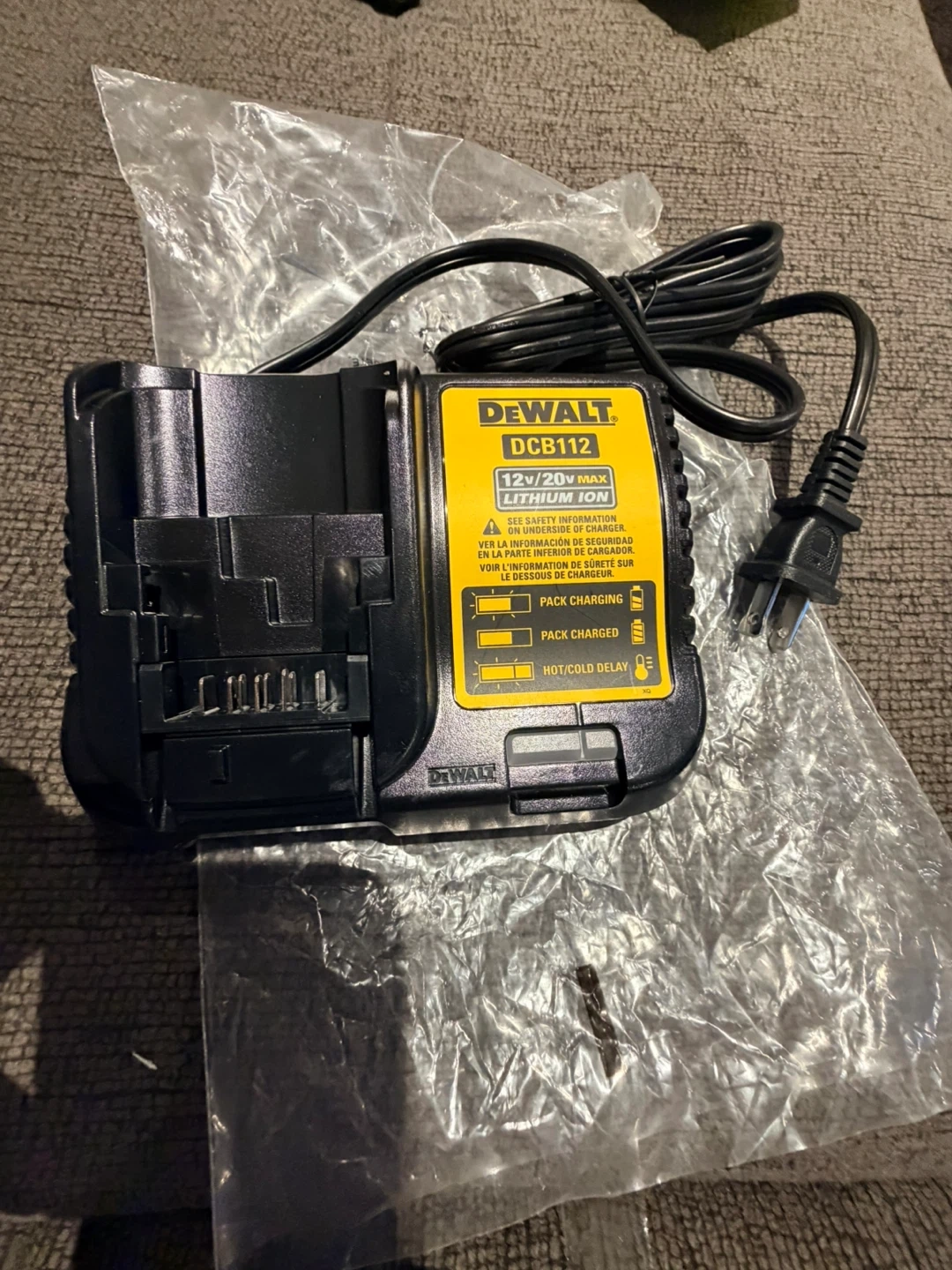 Brand new DeWalt DCB112 battery charger for 12V and 20V MAX Lithium Ion batteries. It's designed for pack charging and includes a hot/cold delay indicator. This charger is compatible with DeWalt's XR Lithium Ion battery system.