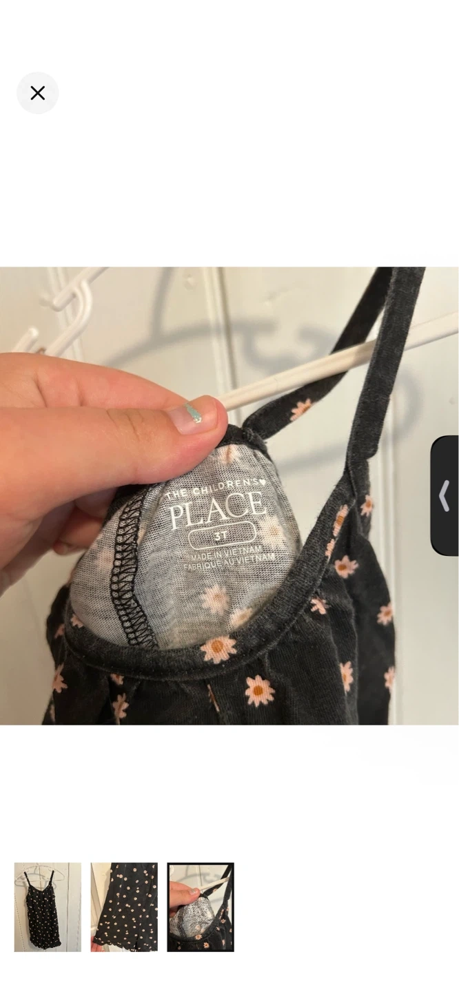 The children’s place brand. Spaghetti strap shorts romper. Black with pink floral print. Size 3t. Brand new condition, light wash wear $3