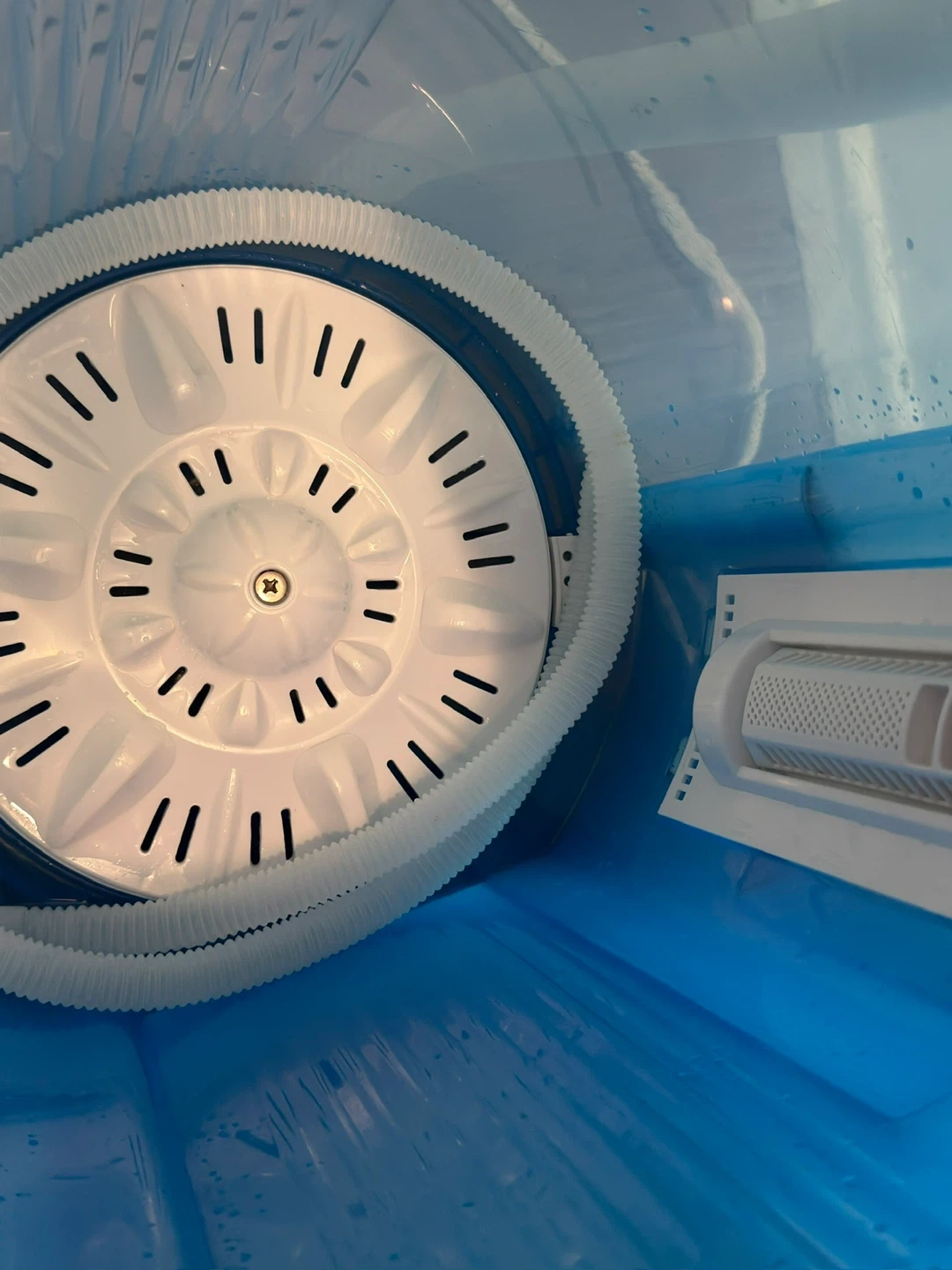 This compact mini twin-tub washing machine is gently used, in great condition, and has been well maintained. It is capable of washing and spinning effectively. It enables you to wash and spin dry at the same time or separately, using individual timers. Its lightweight, rust-resistant plastic body and clear design make it simple to transport and monitor. It's easy to use and takes up little space, making it ideal for dorms, apartments, RVs, and travel.