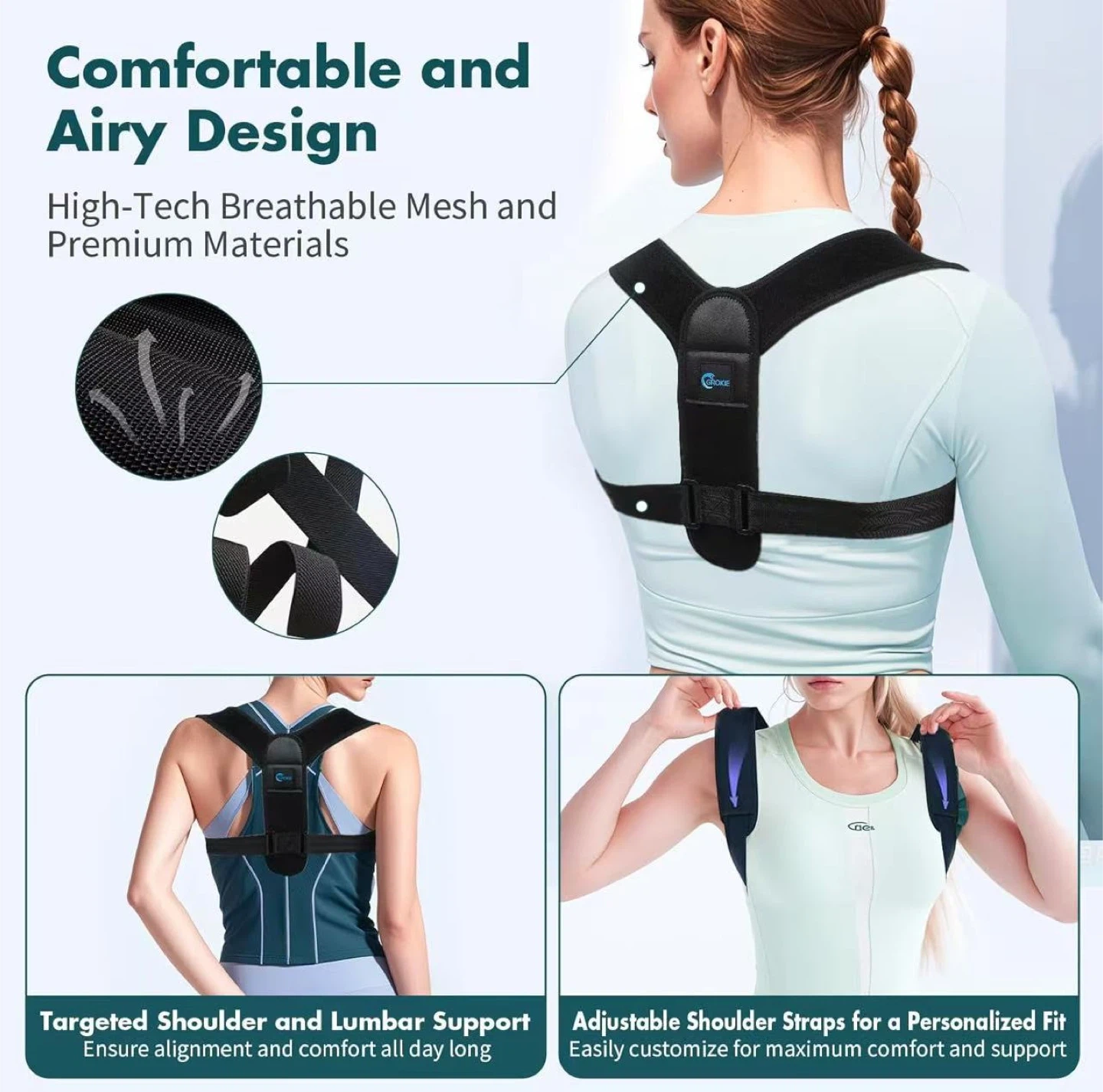 Adjustable Back Brace for Posture Support, Upper Back, Clavicle and Shoulder Support, Comfortable and Breathable Back Straightener for Pain Relief (Medium)