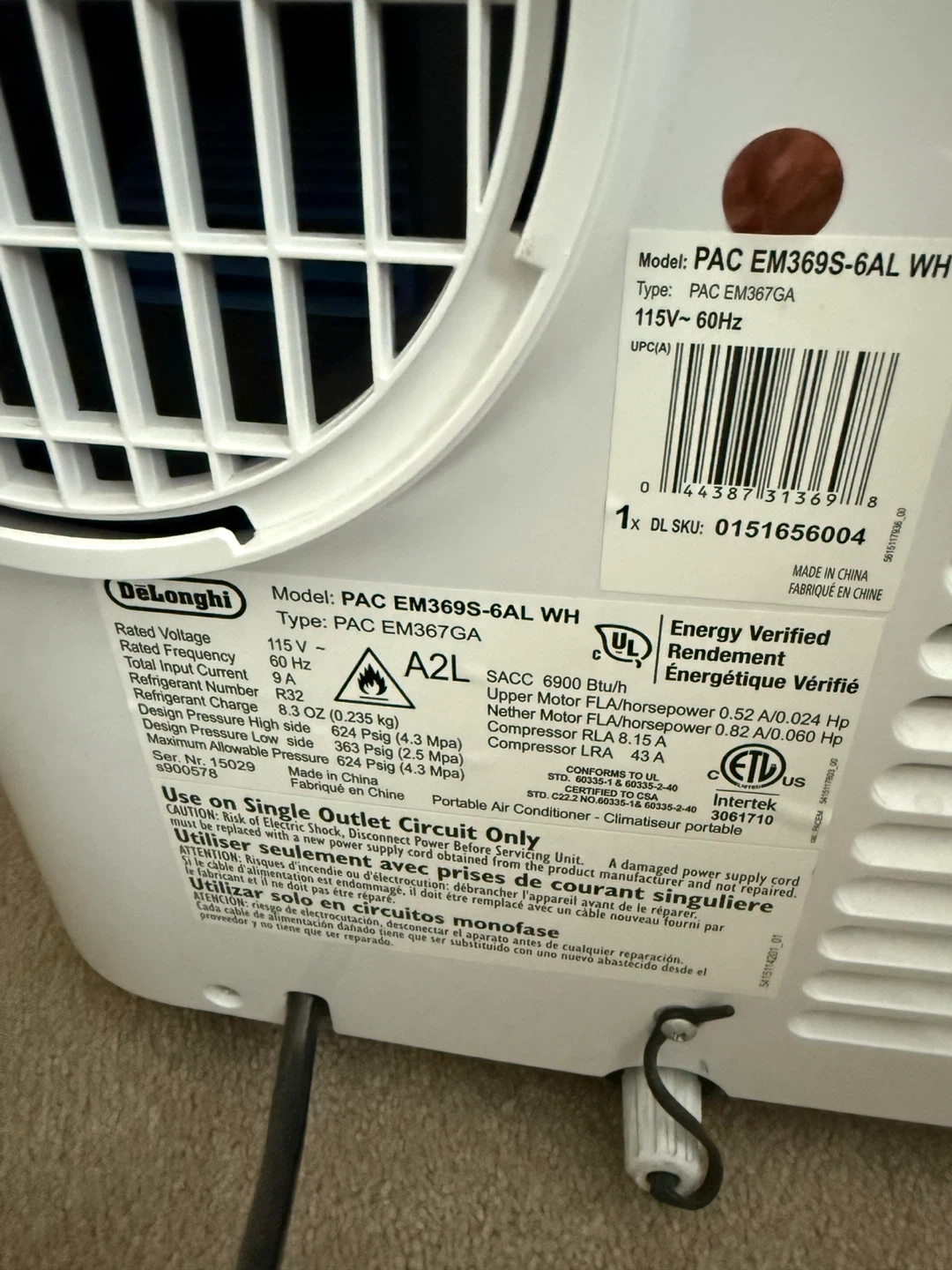 DeLonghi Pinguino PAC EM369S-6AL WH Portable Air Conditioner