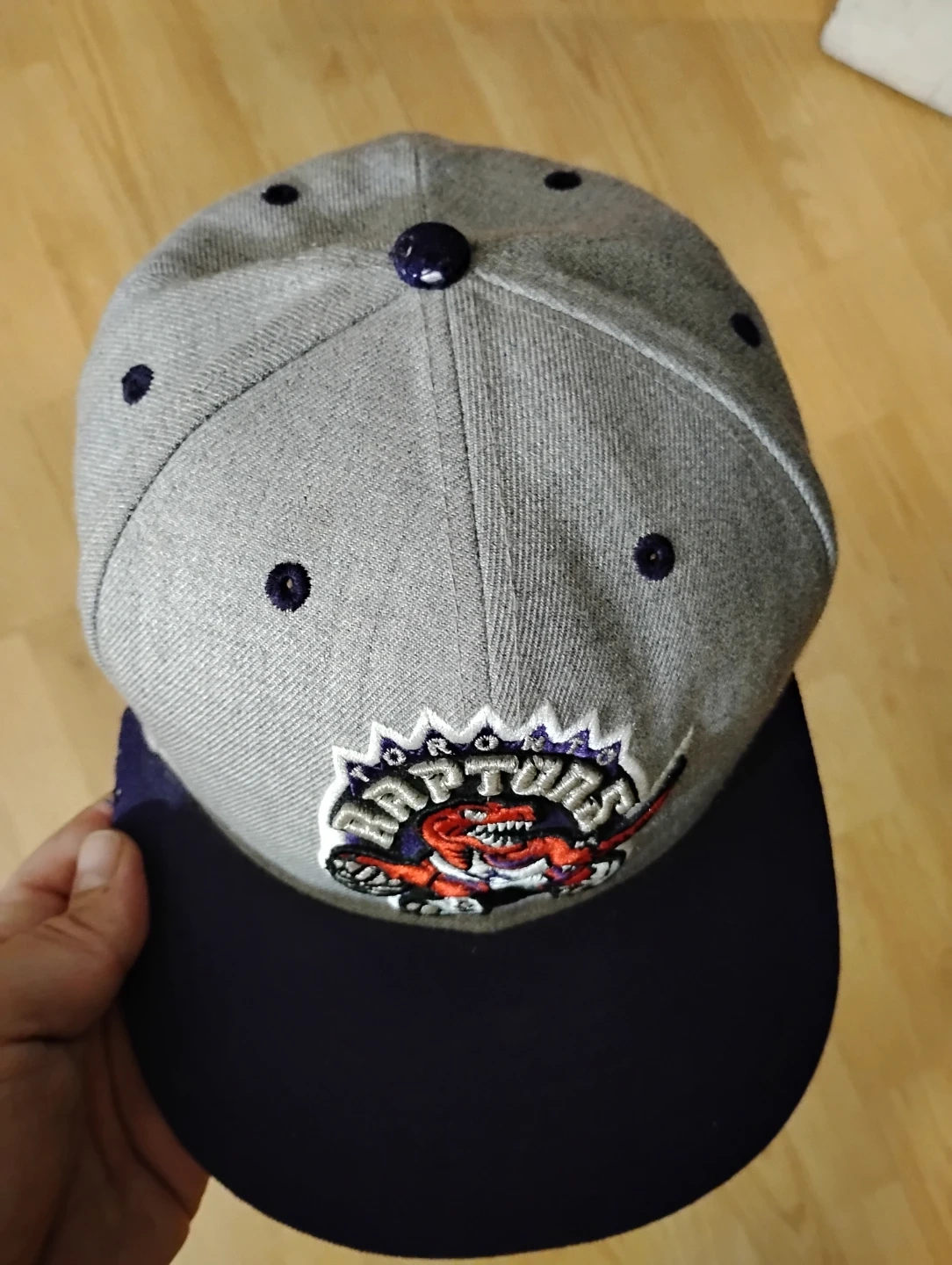 Grey Toronto Raptors 59FIFTY fitted hat. Features the classic Raptors logo. It's a size 7. Perfect for any Raptors fan!