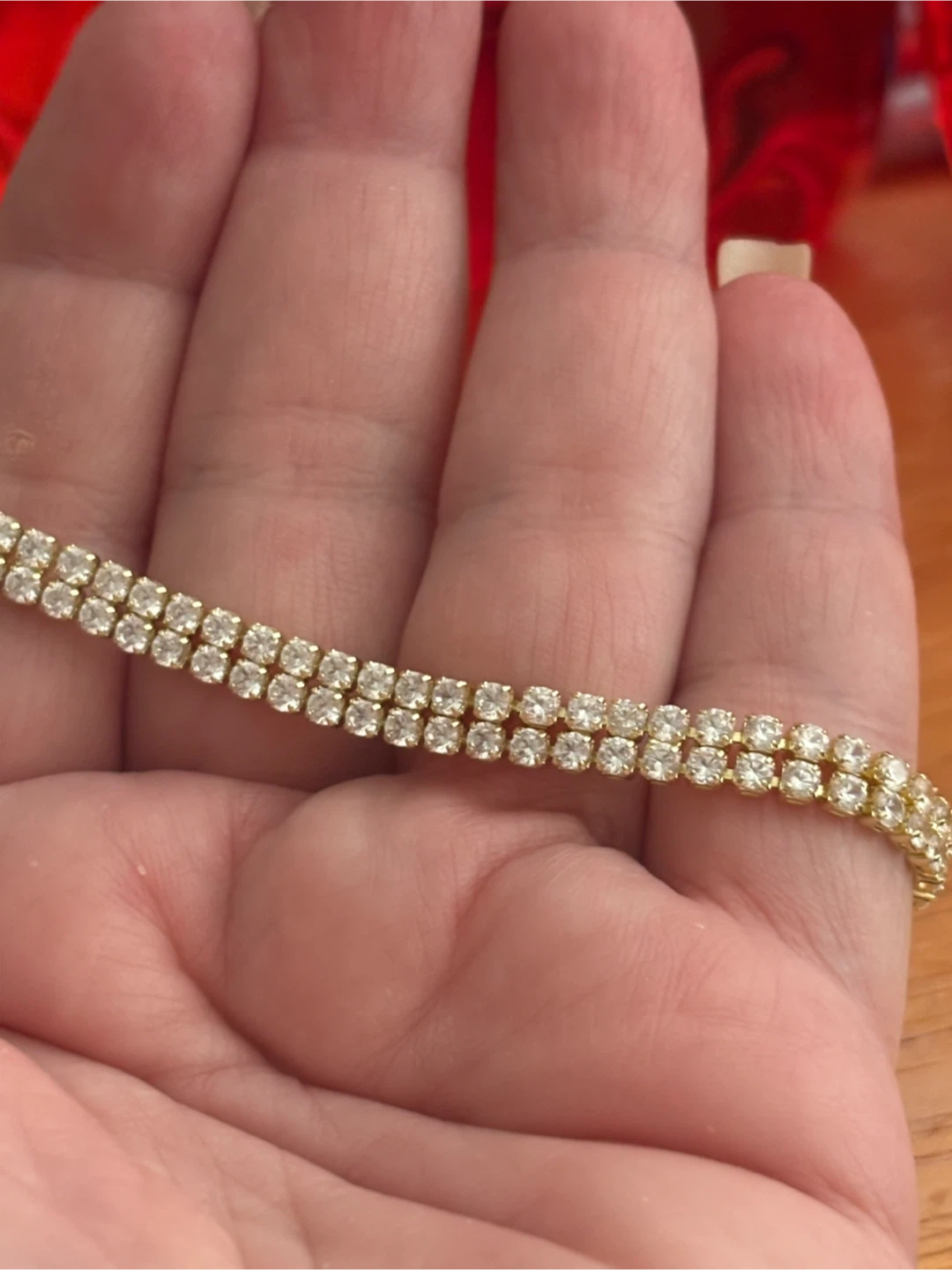 Selling a gold tone tennis bracelet. It's in great condition and features an adjustable closure for a perfect fit. Perfect for adding a touch of sparkle to any outfit