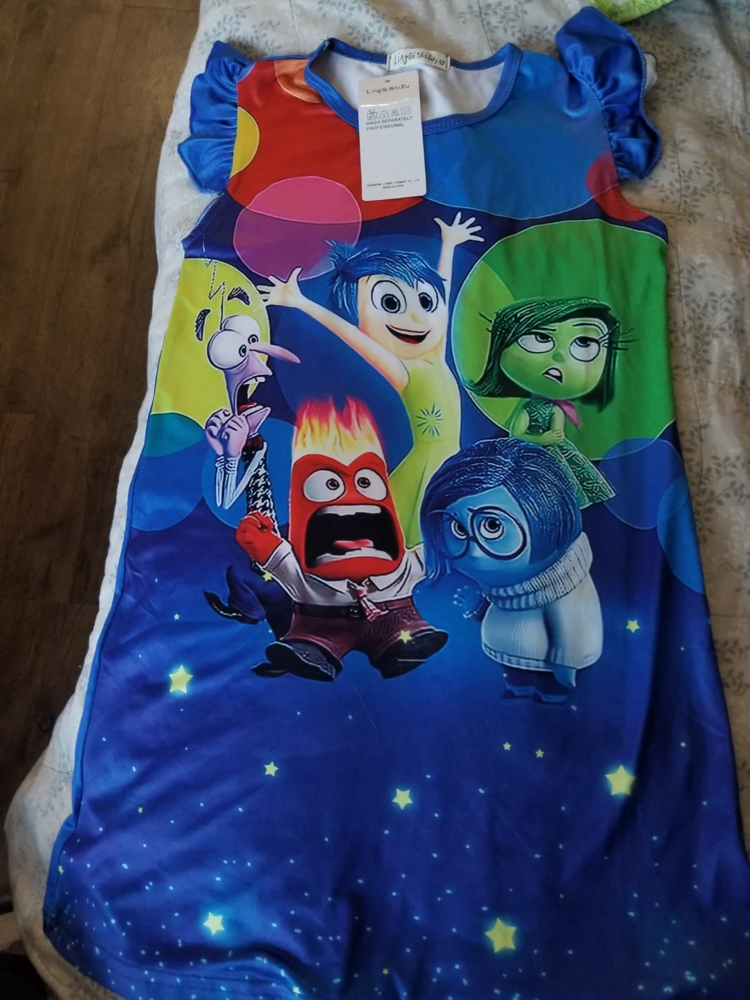 Kids' nightgown featuring characters from Disney Pixar's Inside Out. It's a comfy blue sleep dress with vibrant character graphics. Size 6/7 Machine washable. New with tag