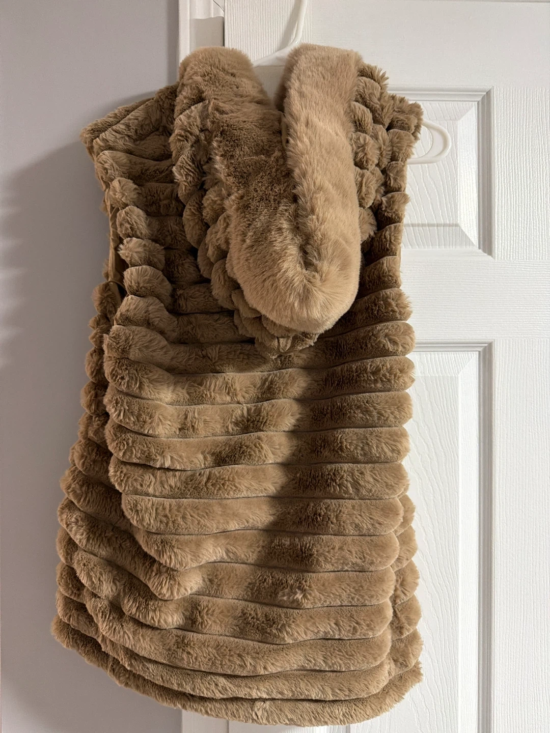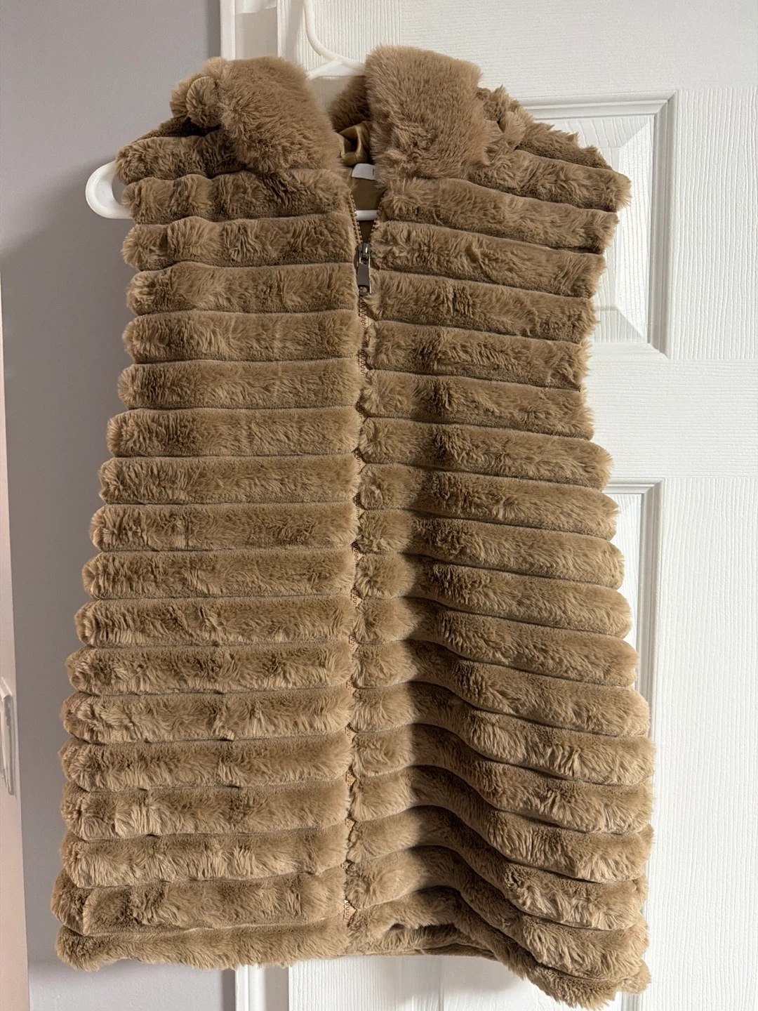 Super soft brown faux fur vest with a zipper closure. It's cozy and stylish! Faux fur material. Worn only once ! Bought it from Emirates ! Beautiful and esthetic .