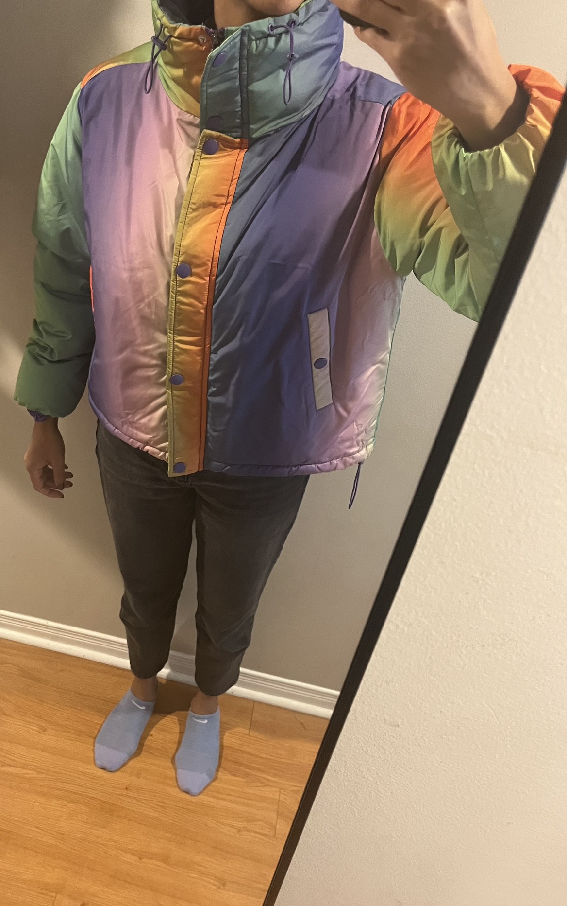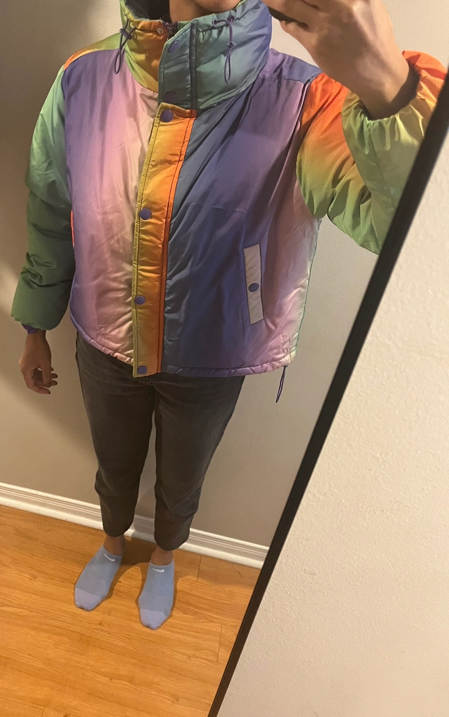 179Multi color cute BDG puffer jacket, very warm and only worn once! Pick up only at Bathurst and King.