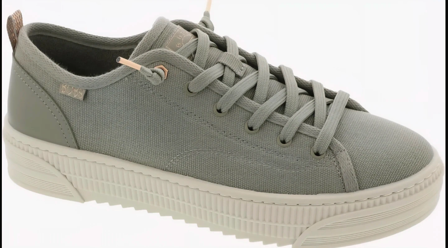 These BOBS by Skechers sneakers are a stylish canvas low-top. They feature a comfortable rubber sole and a pull-tab at the heel. Perfect for everyday wear!
