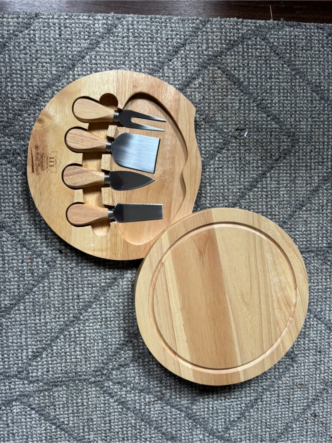 Wooden sliding compartment cheese board with 4 stainless steel rust proof knifes