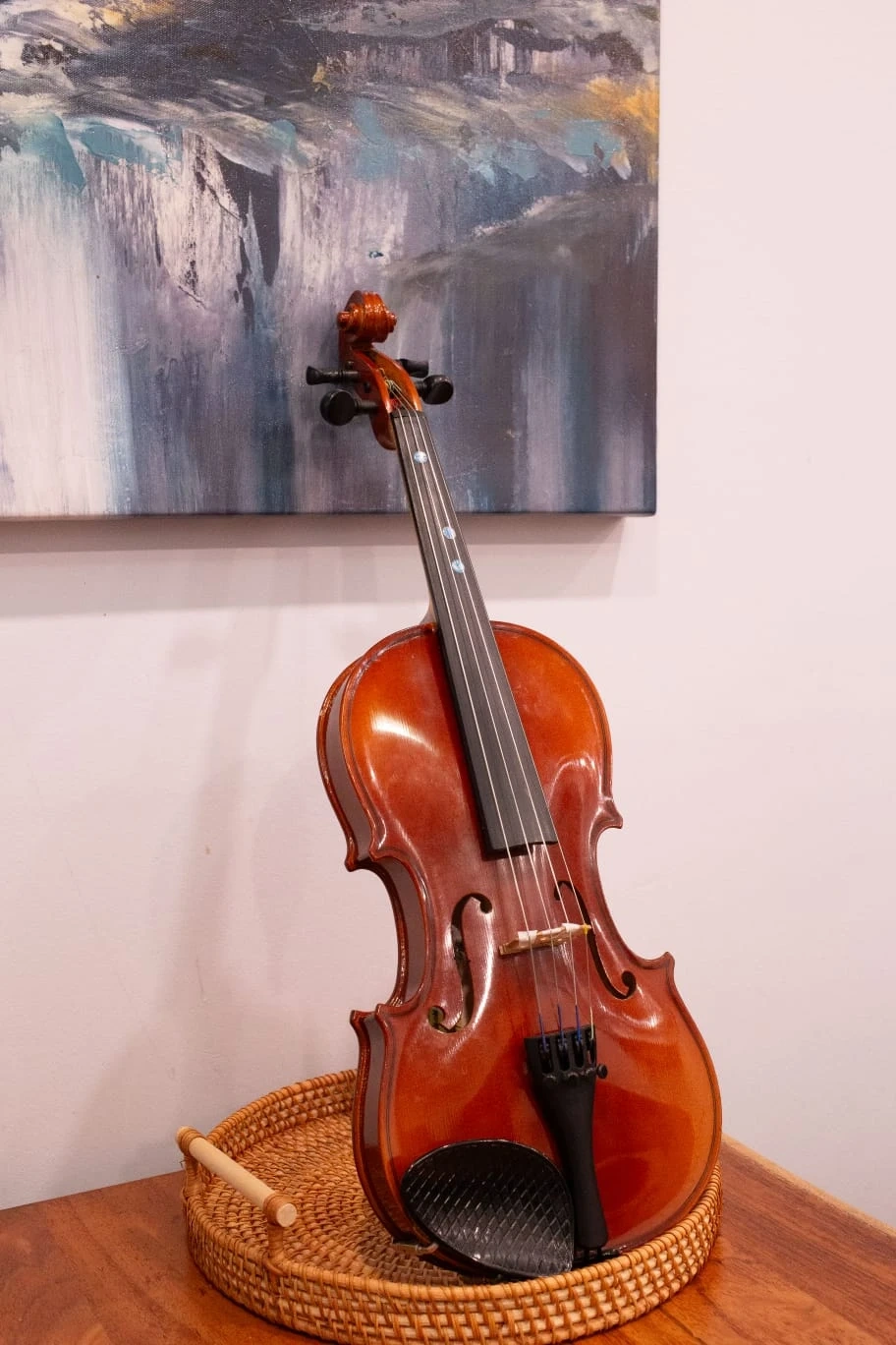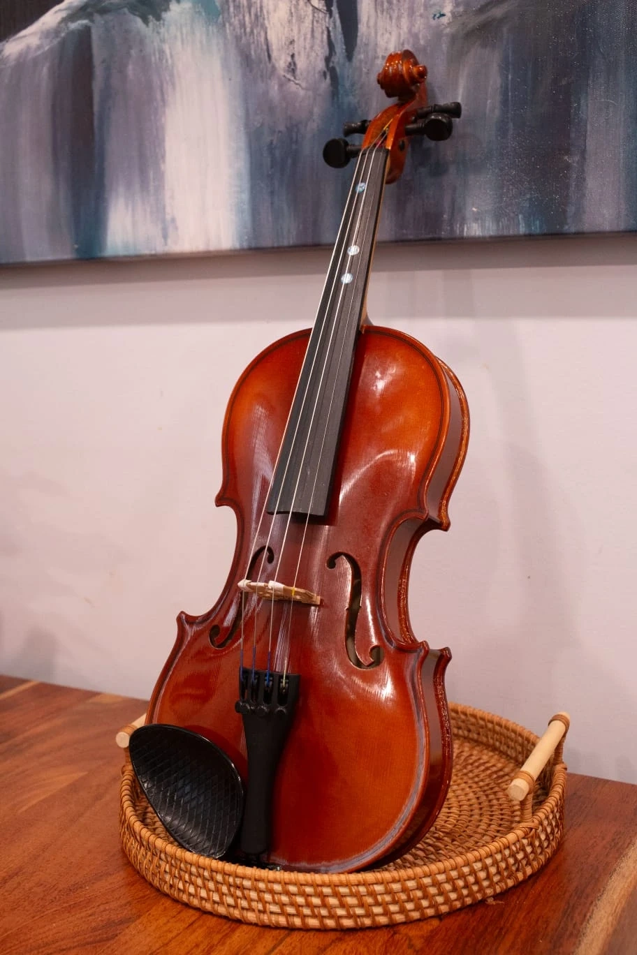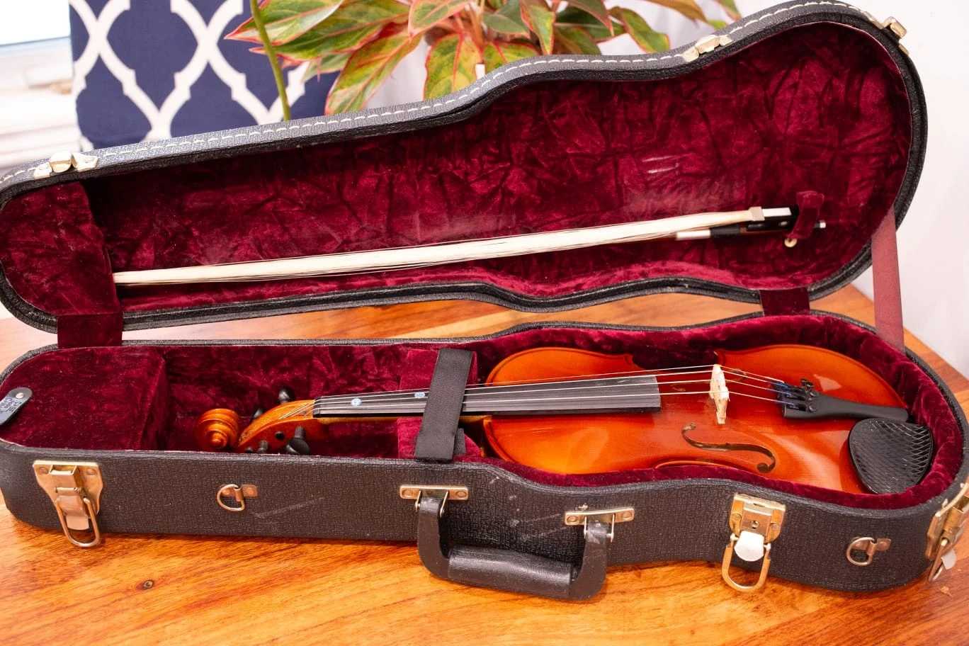 Awesome quality 1/2 violin made in Czech Republic. This is a violin that comes with a hard protective case (made in Canada), chin rest and a bow. It's suitable for beginner or intermediate players. The violin has a polished wooden finish and four strings. Purchased from Long & McQuade but we have sized up so looking to sell. In great condition.