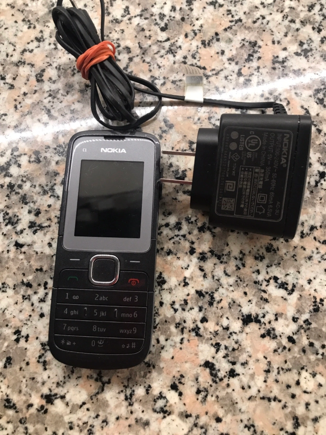A simple Nokia C1-01 cell phone. It's a great basic phone for calls and texts. Comes with its original charger.