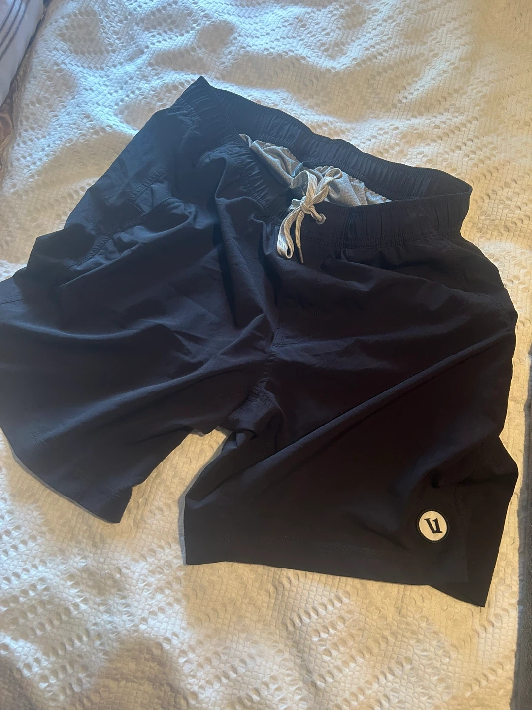 Premium Vuori athletic shorts in classic black. Designed for comfort and versatility, these shorts feature a lightweight performance fabric that’s soft, breathable, and ideal for training, lounging, or everyday wear.