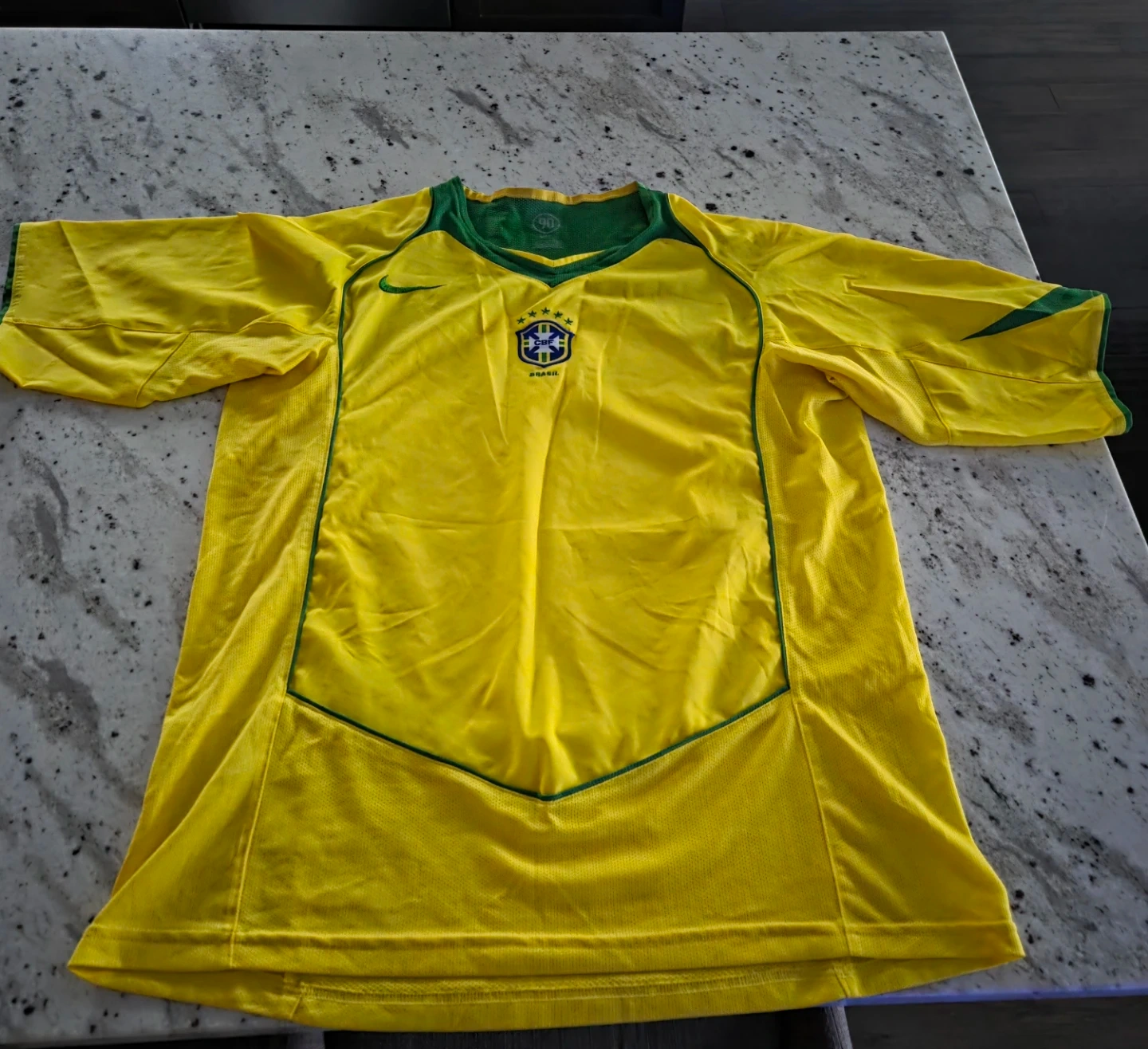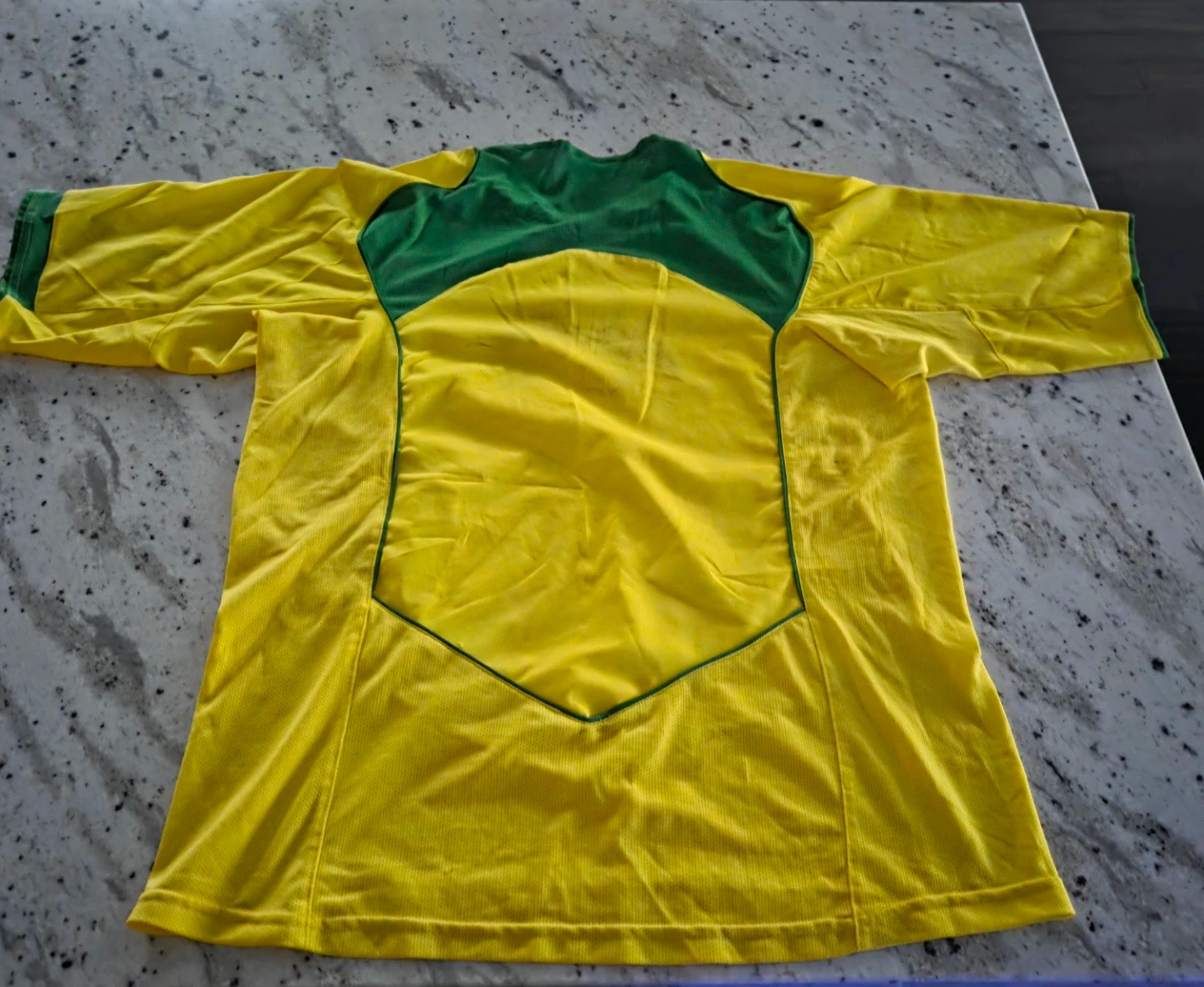Yellow and green jersey for the Brasil National Football Team. Short sleeves with green trim. Features the CBF crest and Nike logo. Great for any soccer fan!