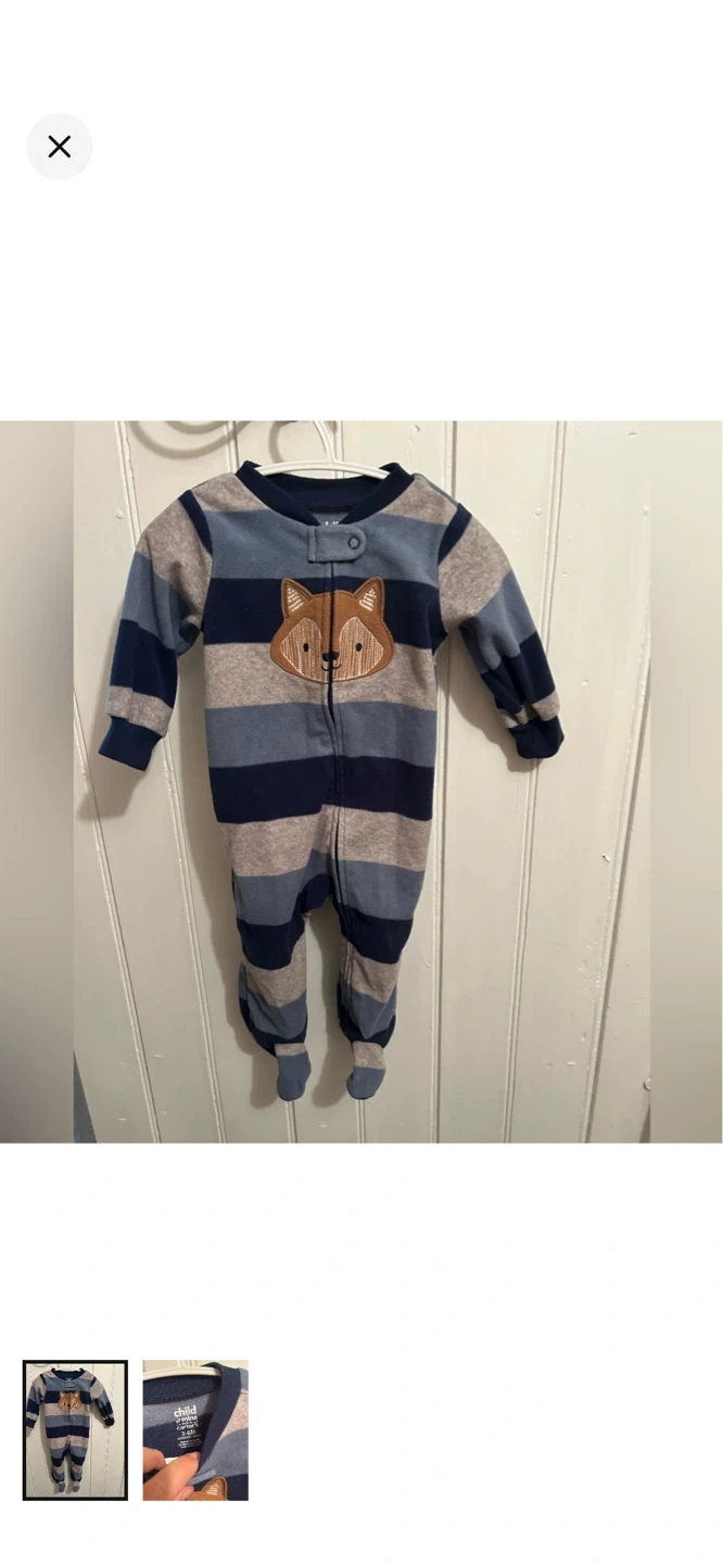 Carters brand. Fleece zip up sleeper. Blue striped fox print. Size 3/6m. Brand new condition $5