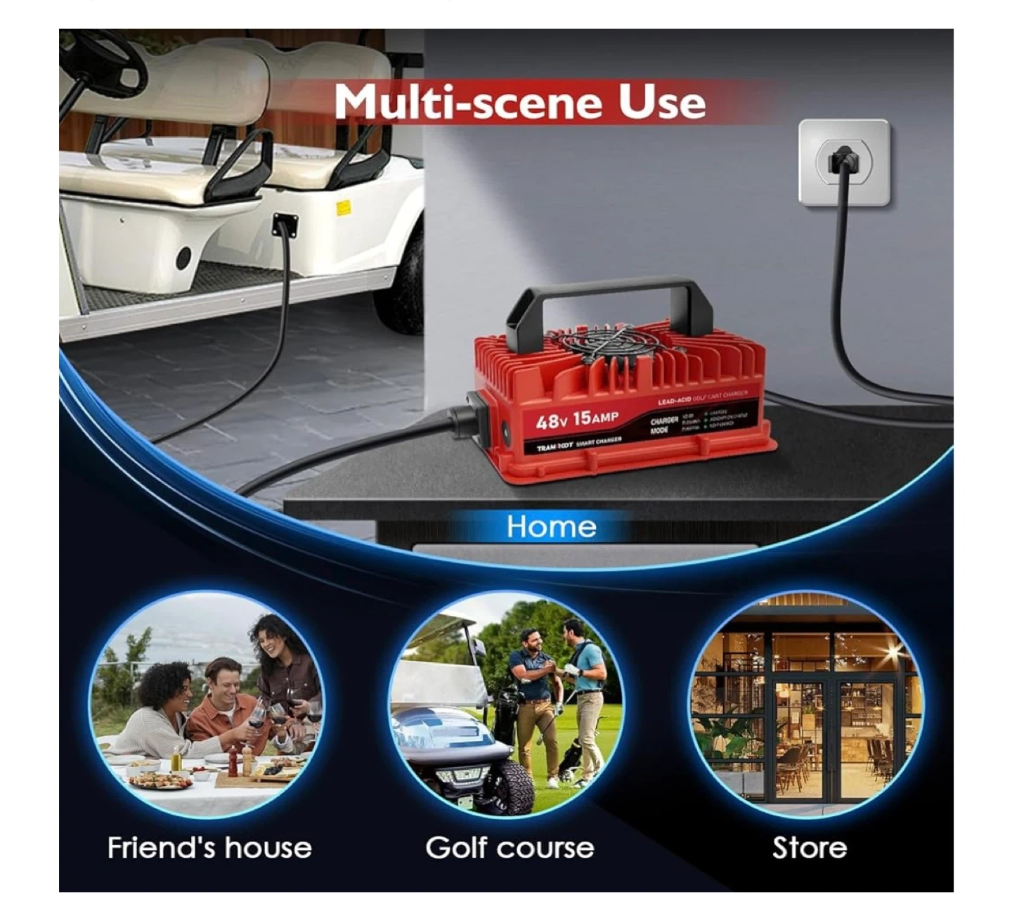 TRAMROOT 48V 15Amp Golf Cart Battery Charger