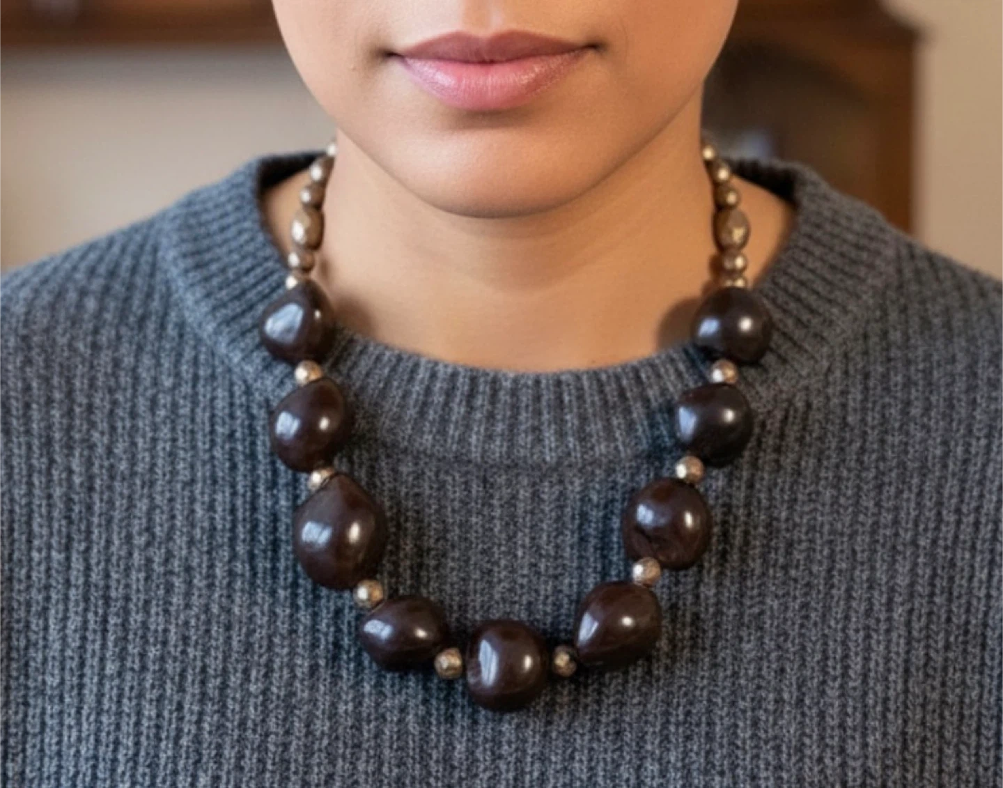 Hawaiian Kukui beads Brown Statement Necklace