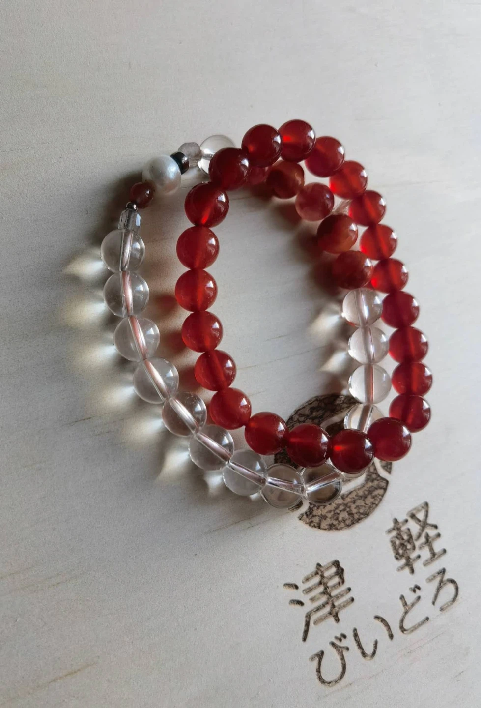 Two beaded bracelets for sale! One is red and the other is clear. They're in great condition and would be a lovely addition to your jewelry collection