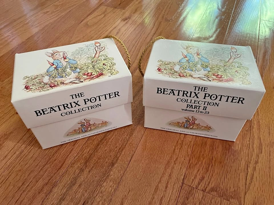 This is a very sweet, adorable little set. A must have for all growing children. The Beatrix Potter Collection 1986 Parts I & II Volumes 1-23 is a collector's edition box set of books by Beatrix Potter, featuring the beloved Peter Rabbit series. This vintage set includes 23 illustrated short stories, perfect for children ages 2-12. The stories become more complex as you move through the series. Published by F. Warne & Co. in the United Kingdom in 1986, this fiction collection is a nostalgic must-have for fans of children's literature and collectors of classic stories. Complete set in two boxes. Edition of the classic sets are a valuable addition to any book lover's collection, offering a captivating narrative and unforgettable characters in a nostalgic 1985/1986 format. Books are vintage, but in perfect condition. Most have never been touched. Please see pictures.
