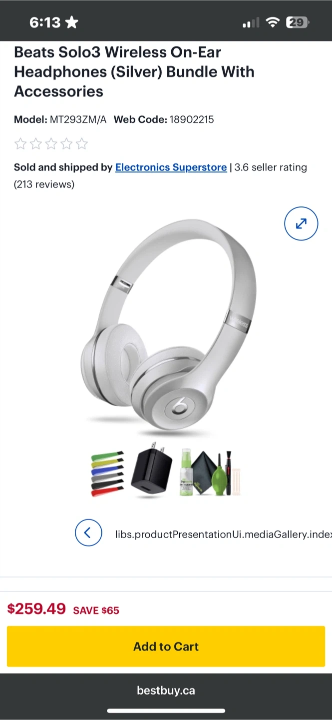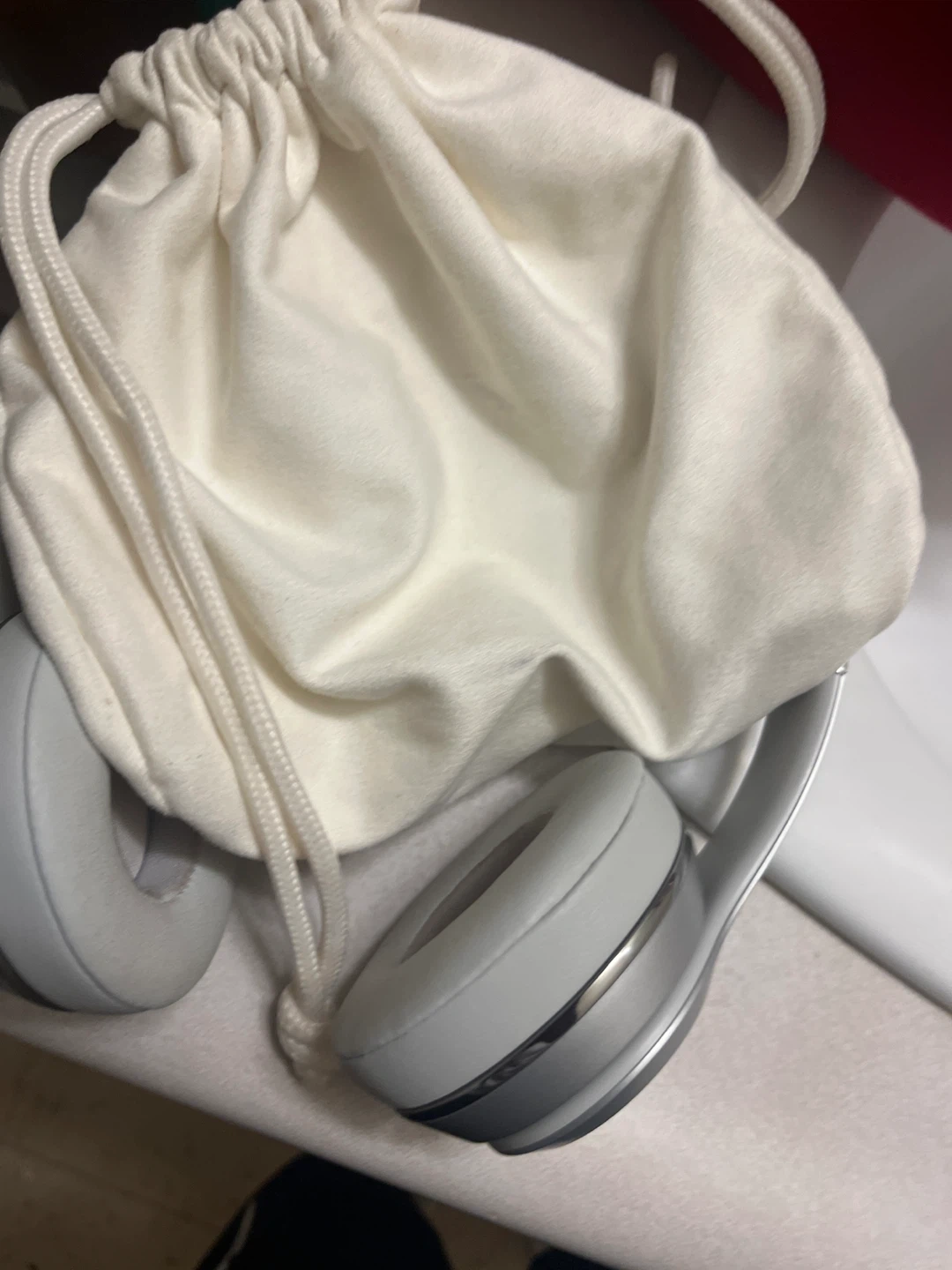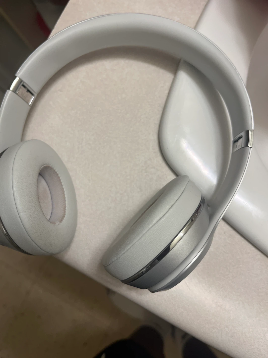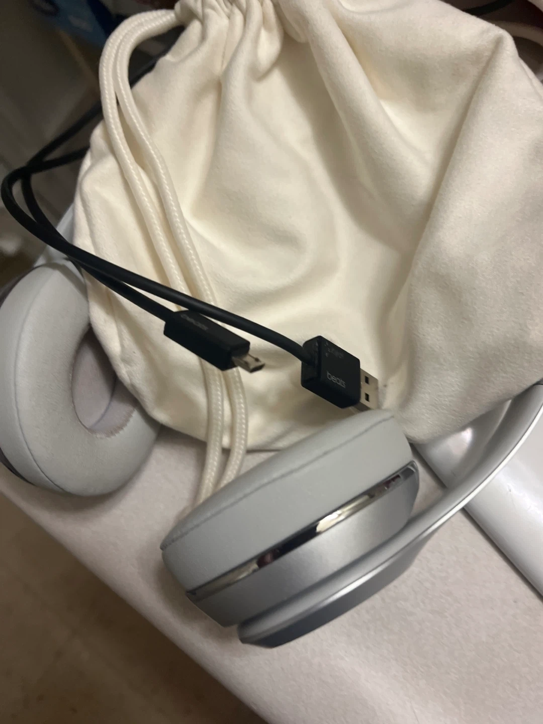 Selling a pair of Beats Solo3 wireless on-ear headphones in silver. They come with the original accessories, including the charging cable and carrying pouch. Model number is MT293ZM/