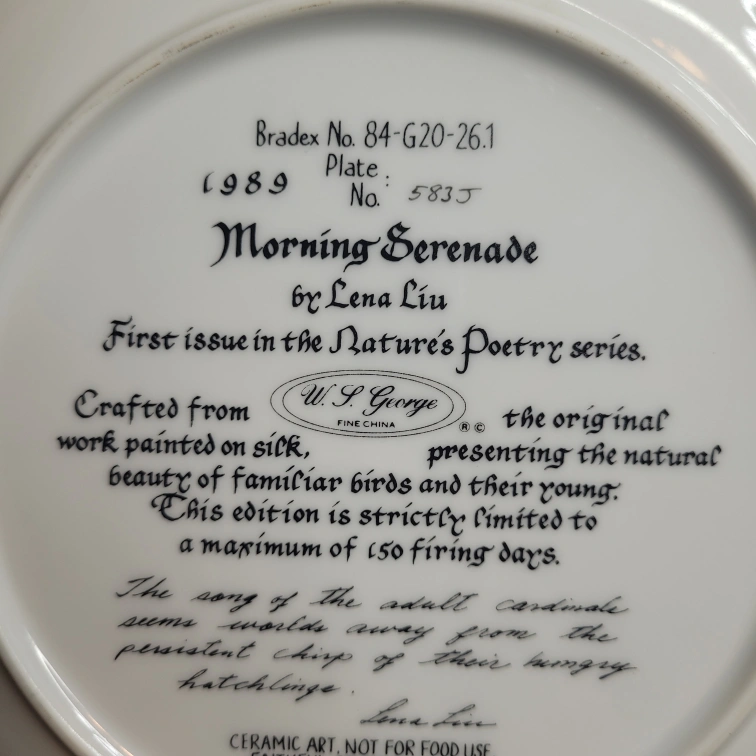 Beautiful 8 1/2" Cardinal Collector Plate - Morning Serenade by Lena Liu - Narure's Poetry Series - no box no papers Stand not included Excellent Condition please see all pictures Please See all my Other Listings, Bundle & Save for a Better Deal! Located in Bradford, May be able to Meet, Shipping Offered at Buyers Expense, Please contact me for more Info & to make arrangements, sorry no holds without an ET, Thank you so much for Looking! I have more cardinal plates not listed but willing to sell