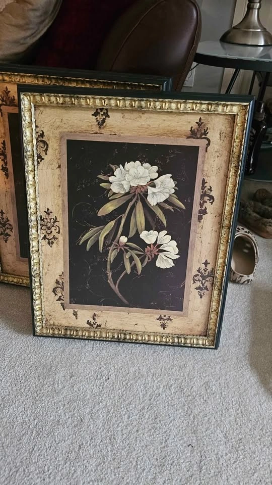 60The silver rhodendrom and matching silver Iris, by Artist Andrew Regina. This particular frame is adding to the beauty of this pair.