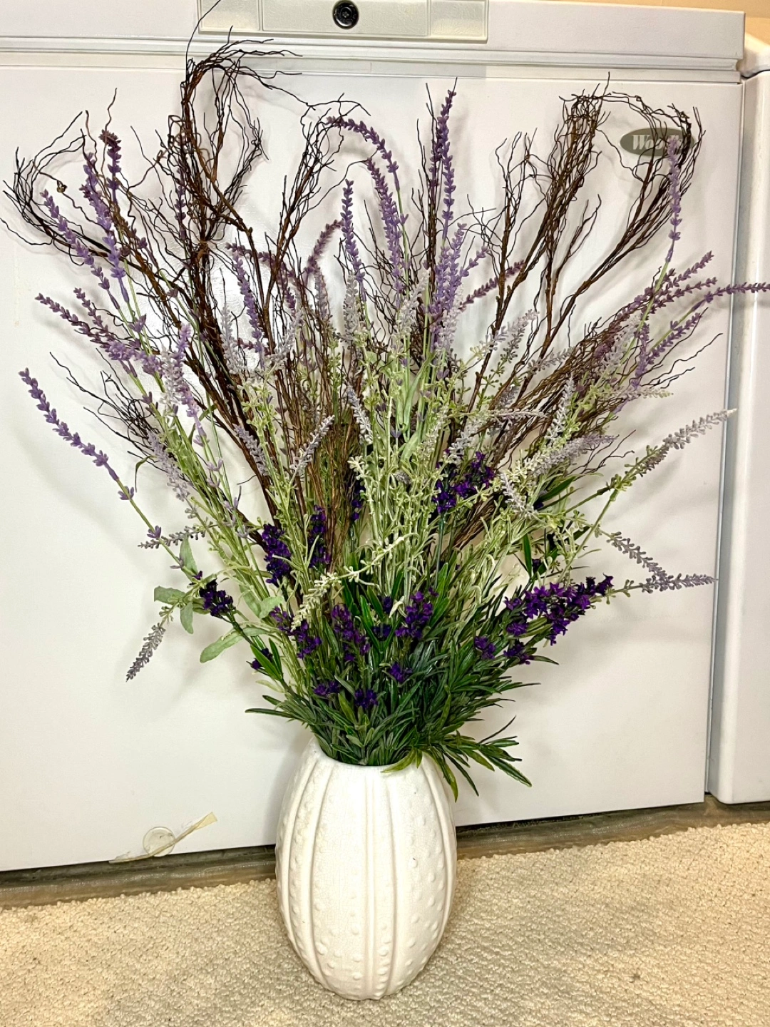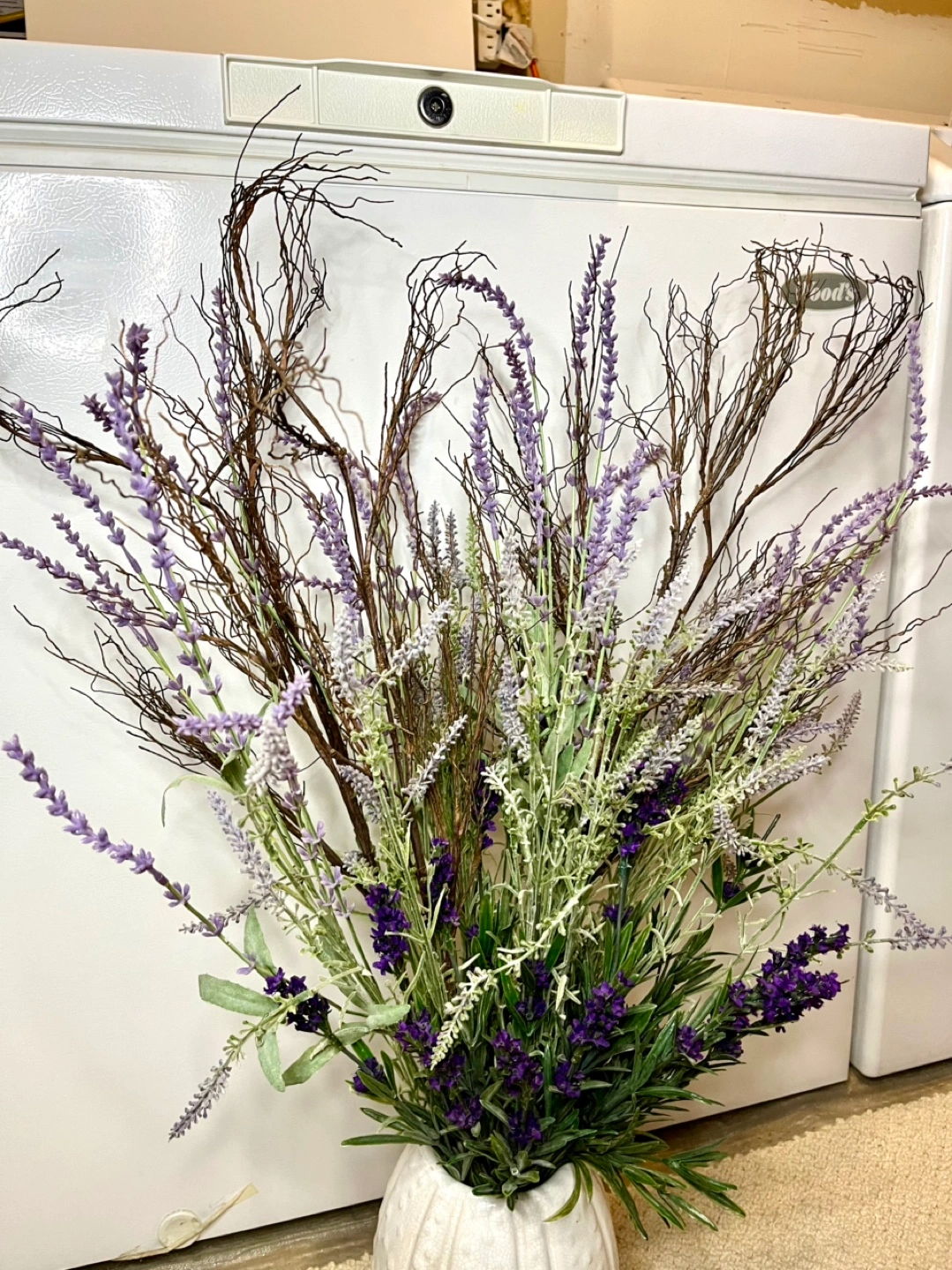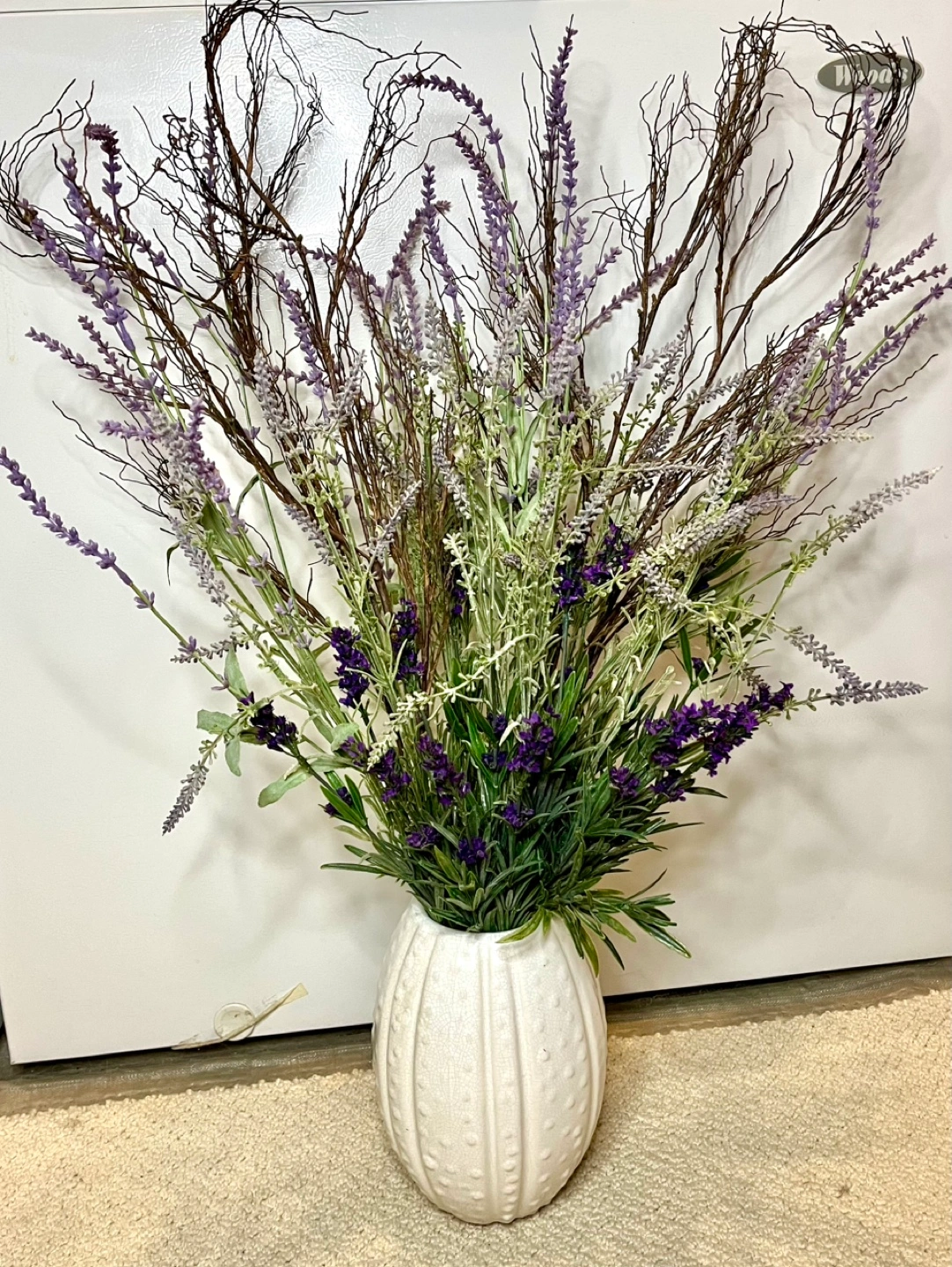 77Beautiful Artificial Floral Arrangement - Lavender and Purple Flower Themed Measures about 32 inches tall and 26 inches at widest part. Pickup only. McKenzie Lake SE