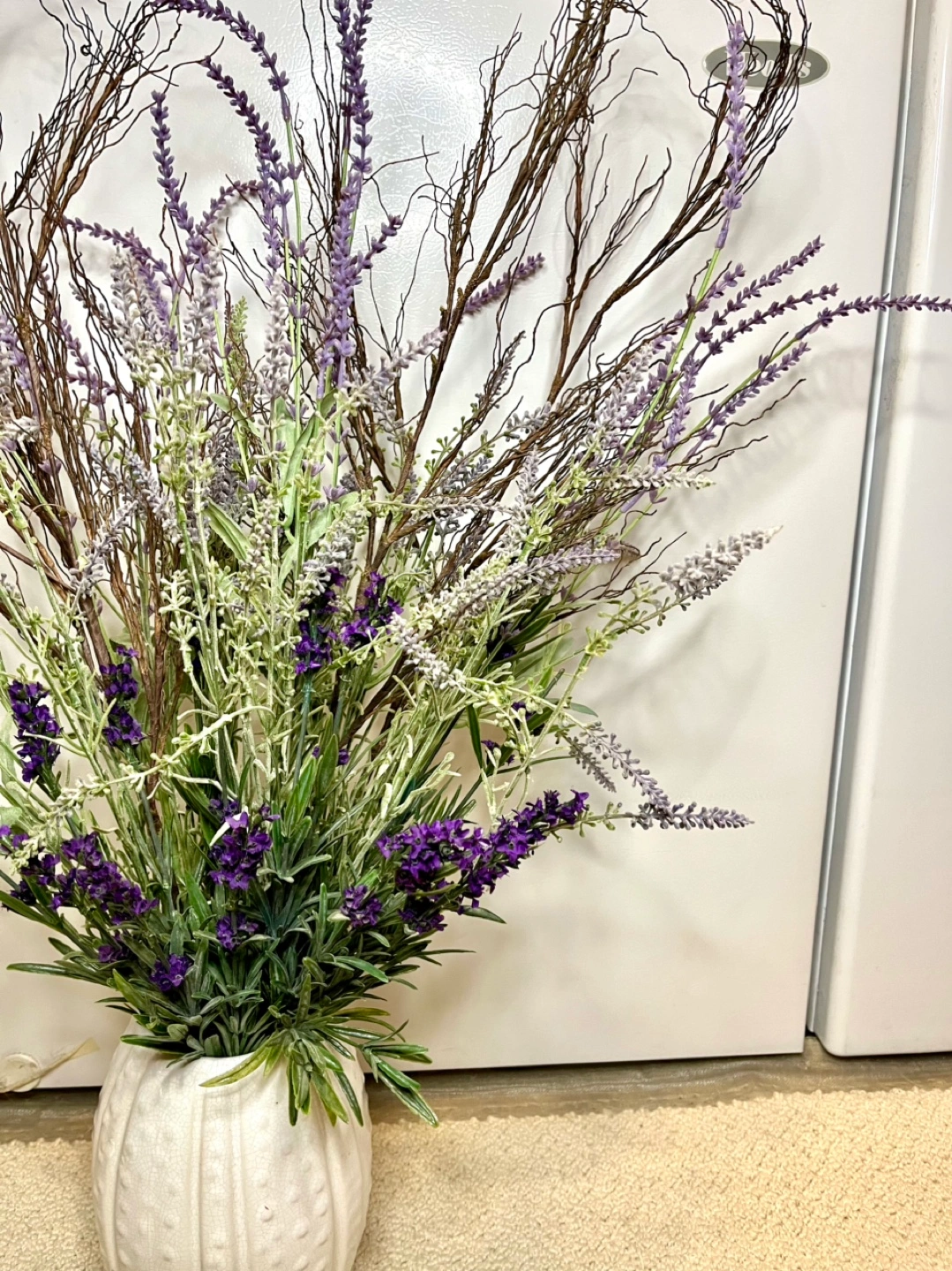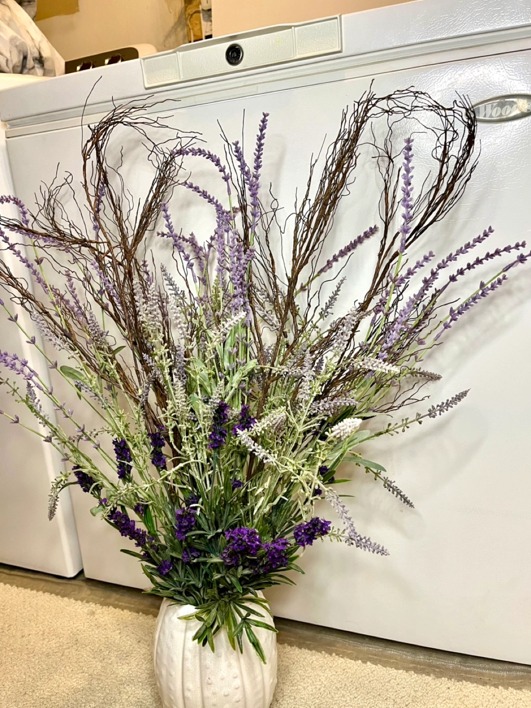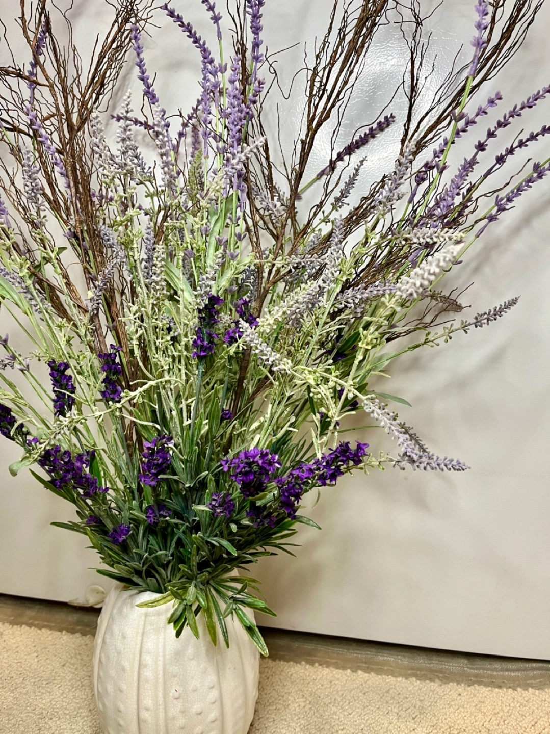 77Beautiful Artificial Floral Arrangement - Lavender and Purple Flower Themed Measures about 32 inches tall and 26 inches at widest part. Pickup only. McKenzie Lake SE