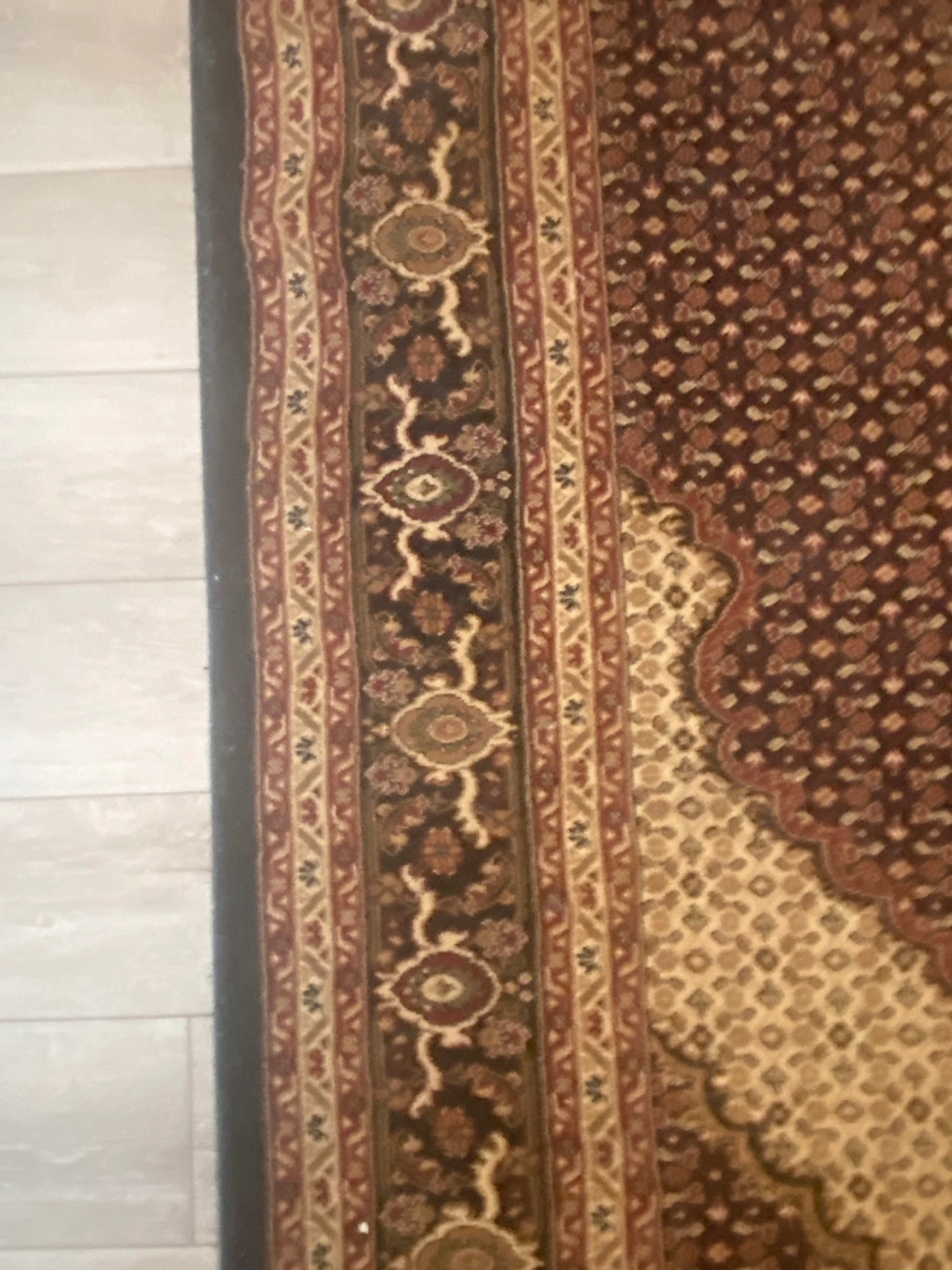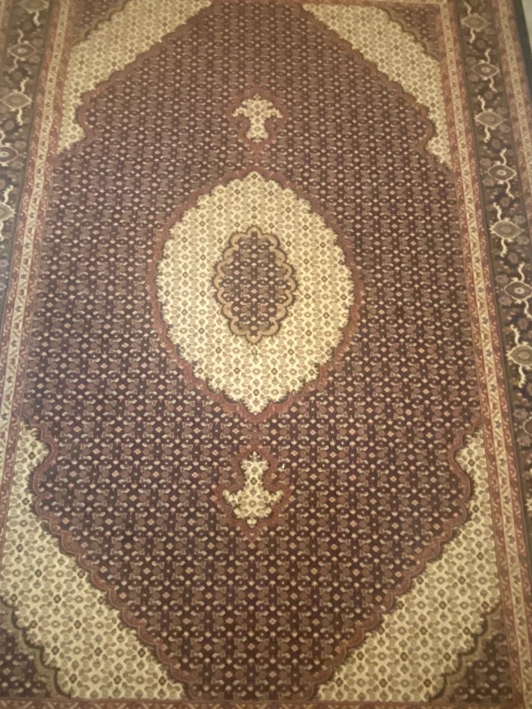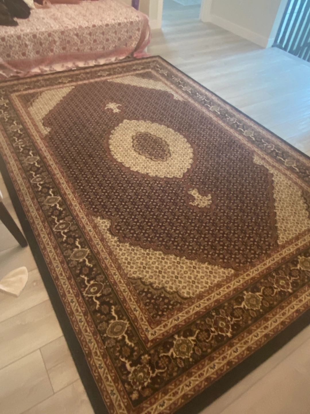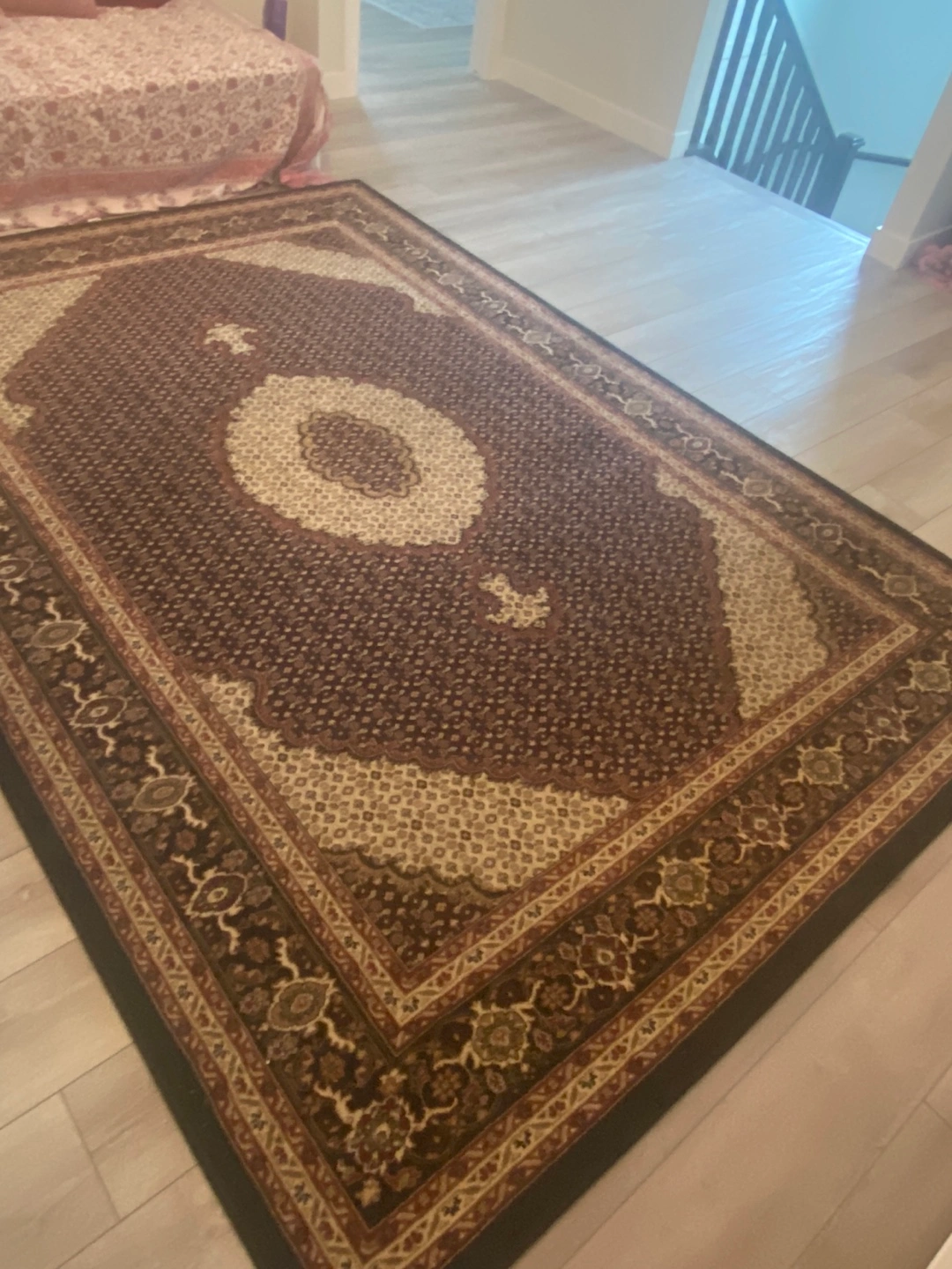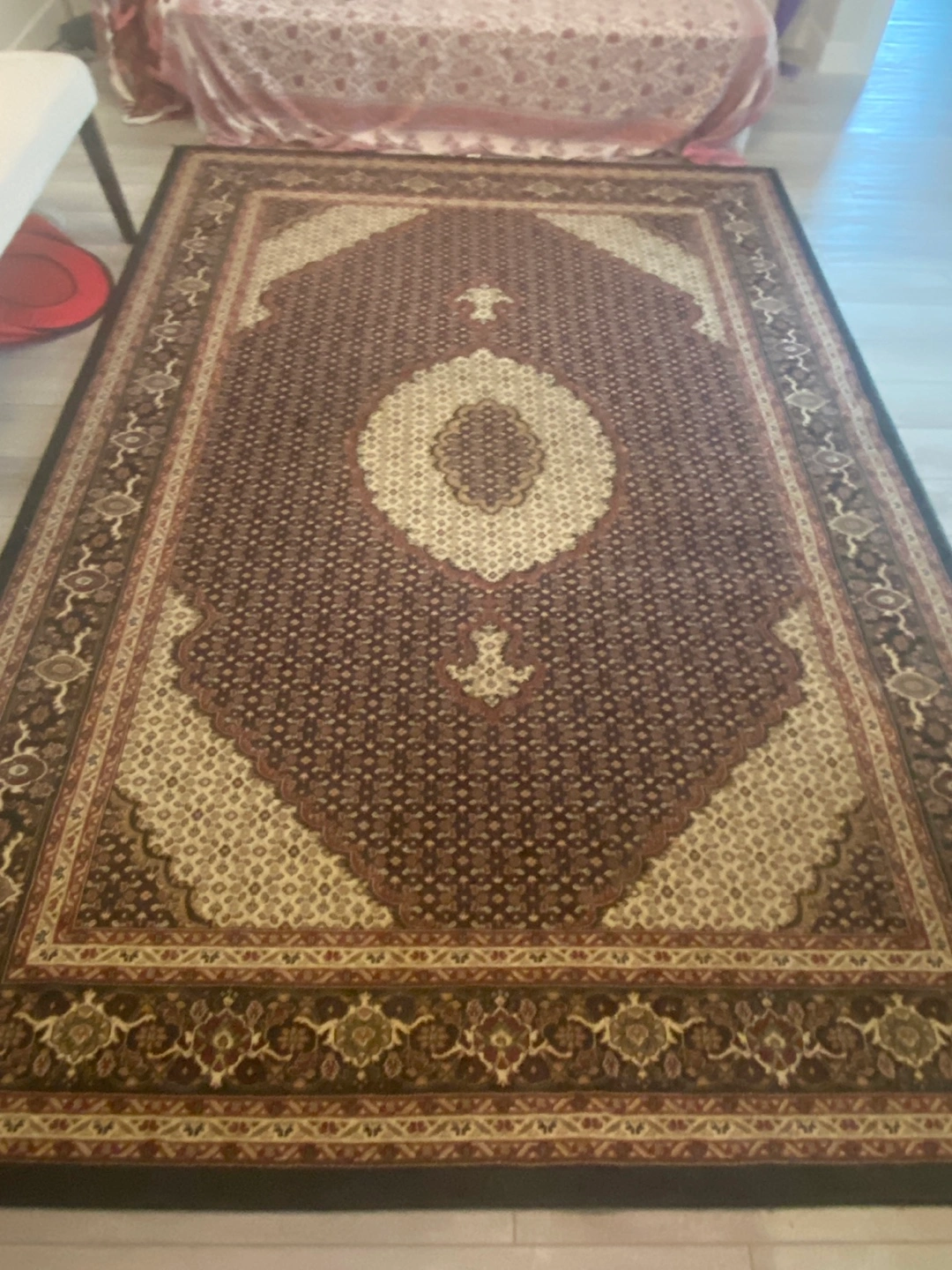 This is a beautiful black, brown and red Persian carpet. It is thick and great quality. It would look great in any bonus room or living room. We are selling it because it doesn’t match our house. It is in great condition. Length: 290cm Width: 200cm