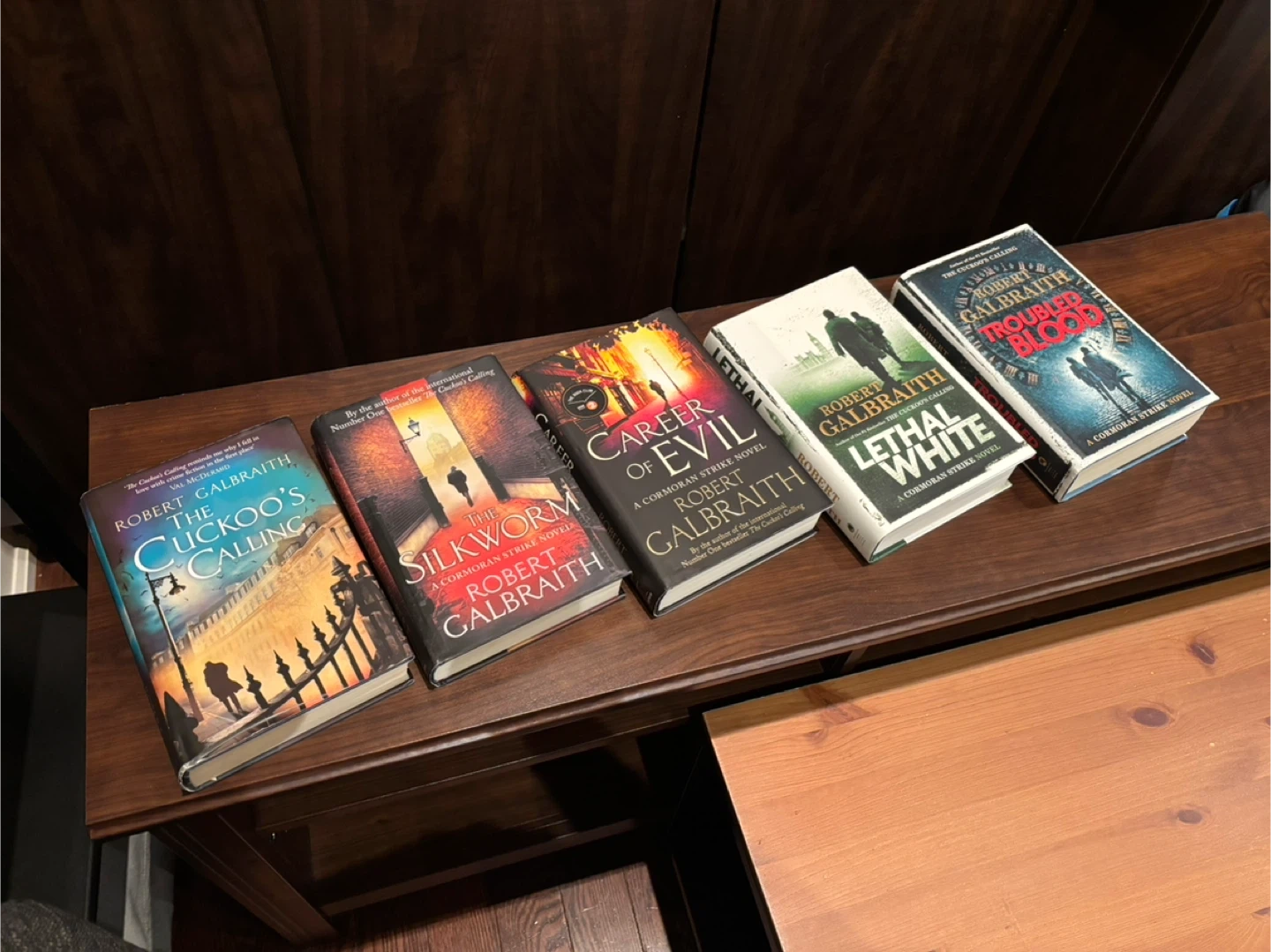 10- The Silkworm by Robert Galbraith - The Cuckoo’s Calling by Robert Galbraith - Troubled Blood by Robert Galbraith - Career of Evil by Robert Galbraith - Lethal White by Robert Galbraith