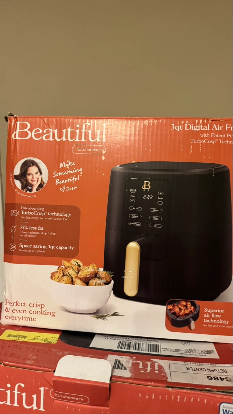 1013qt capacity air fryer. Patent-pending TurboCrisp technology. Cooks fast and evenly. Space saving design. Serves up to 4 people.