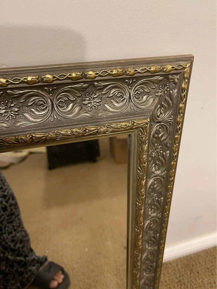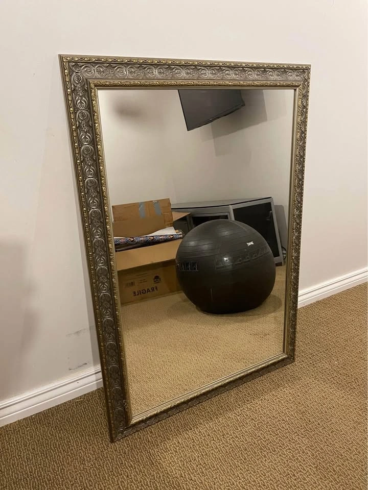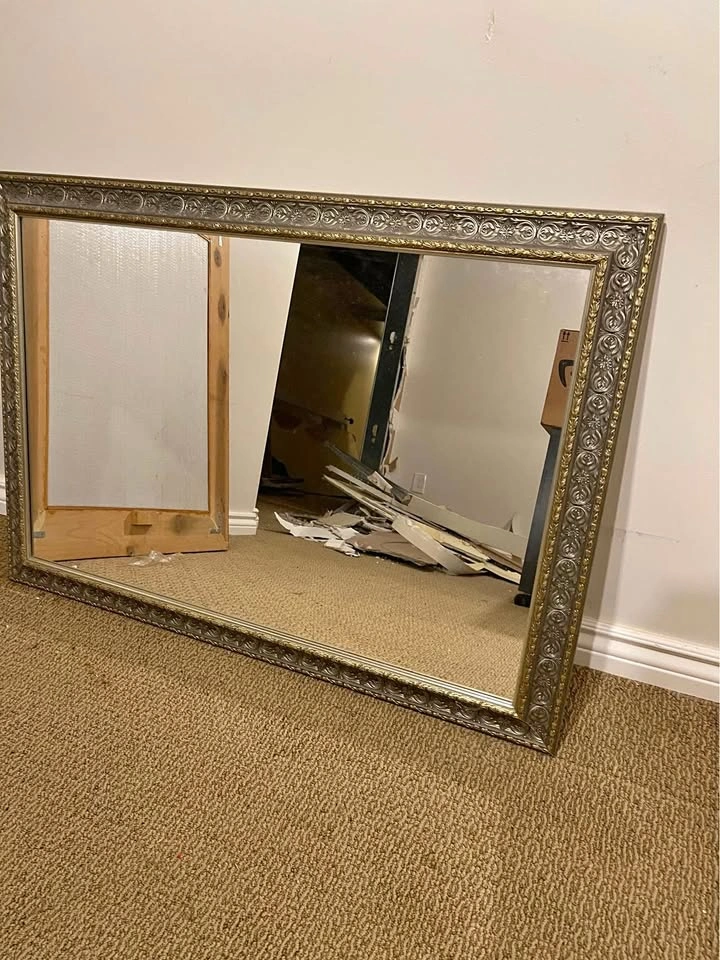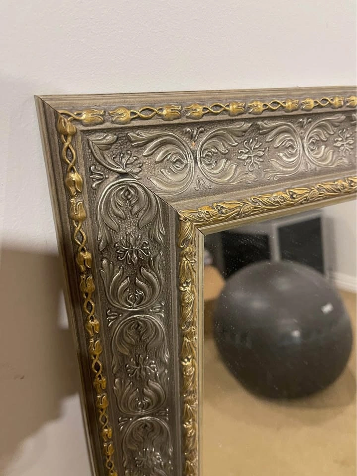 Beautiful metal antique mirror, delicate design. Asking just $55. 29”x41” Can be hanged by both sides.