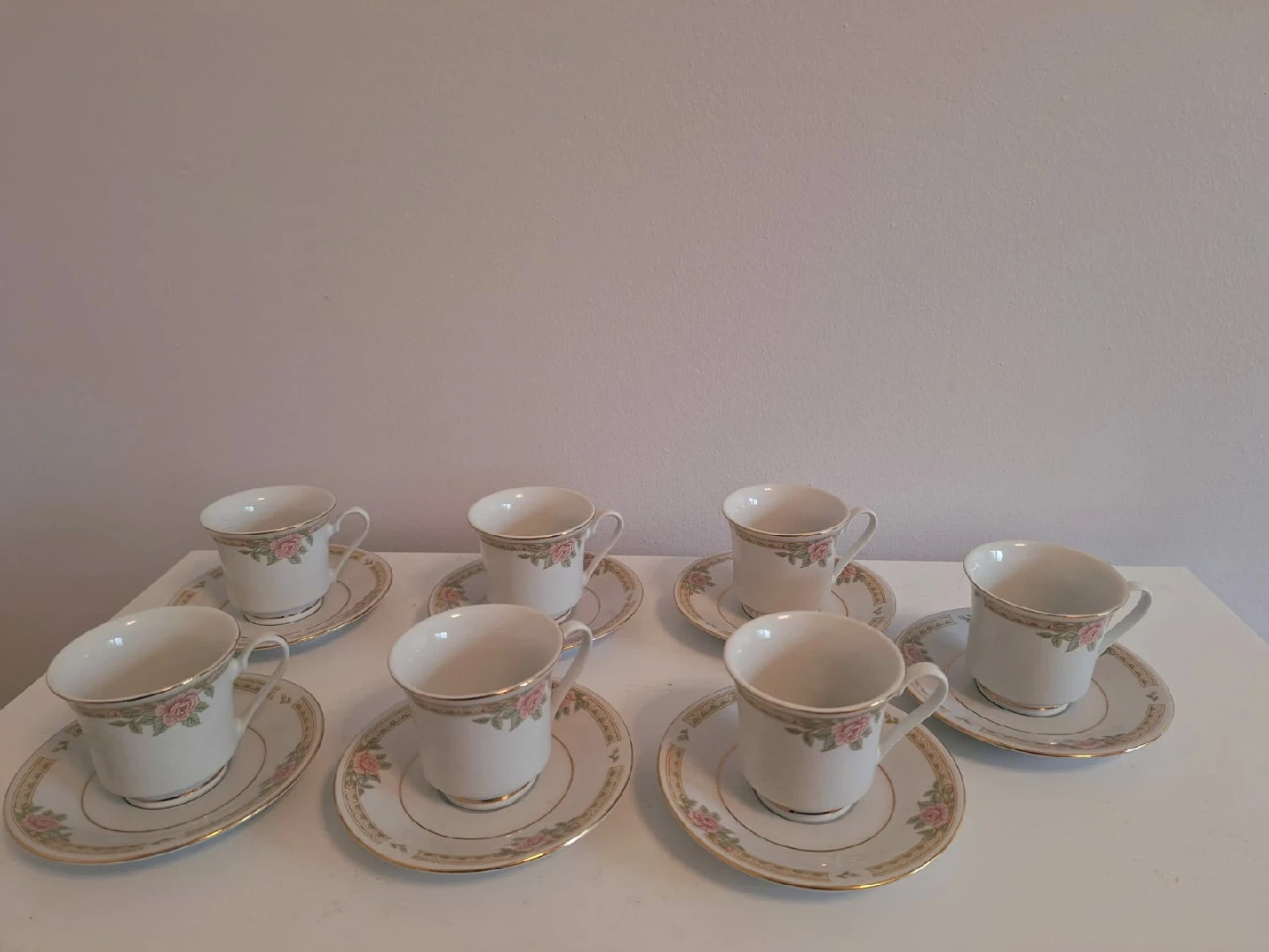 927*PLEASE MESSAGE ONLY TO PICKUP - If ad is up it's Available!!! Very pretty with good lines. LYNNS Fine China 7 mini cup and saucer set. Rarely used, literally new! Each cup capacity is about 80 ml or 2.7 ounce. **Price $15 for the set - FIRM** Pick up at Erin Mills or Square One. Please check my other listing, lots of good stuff going cheap!