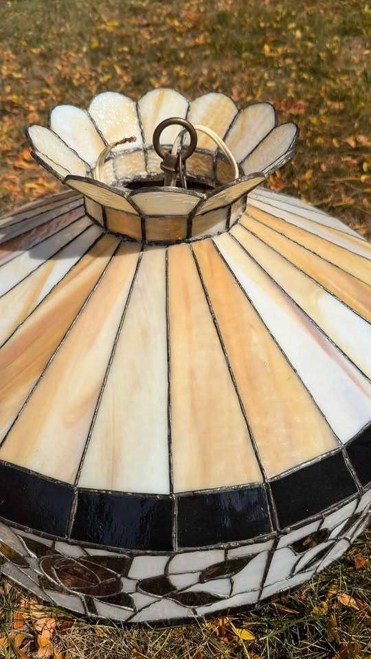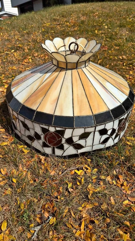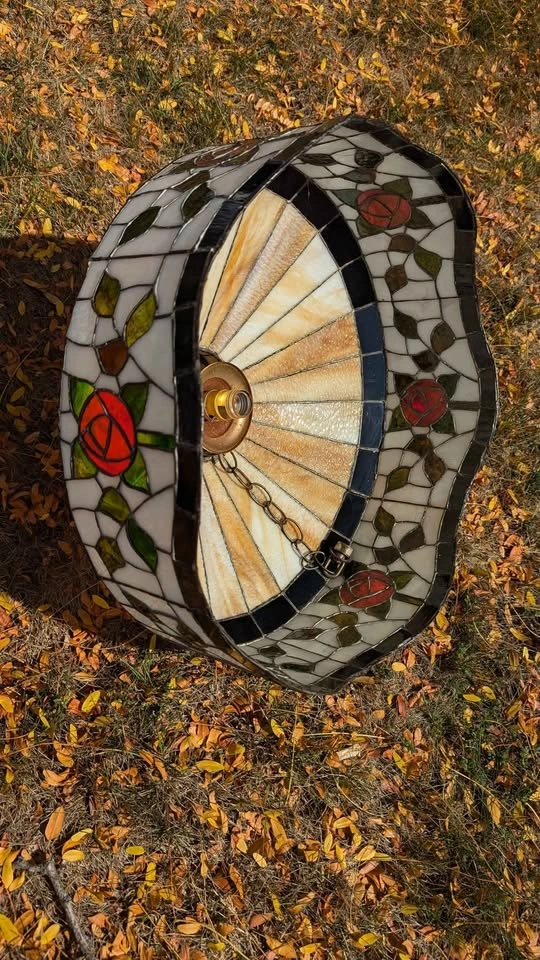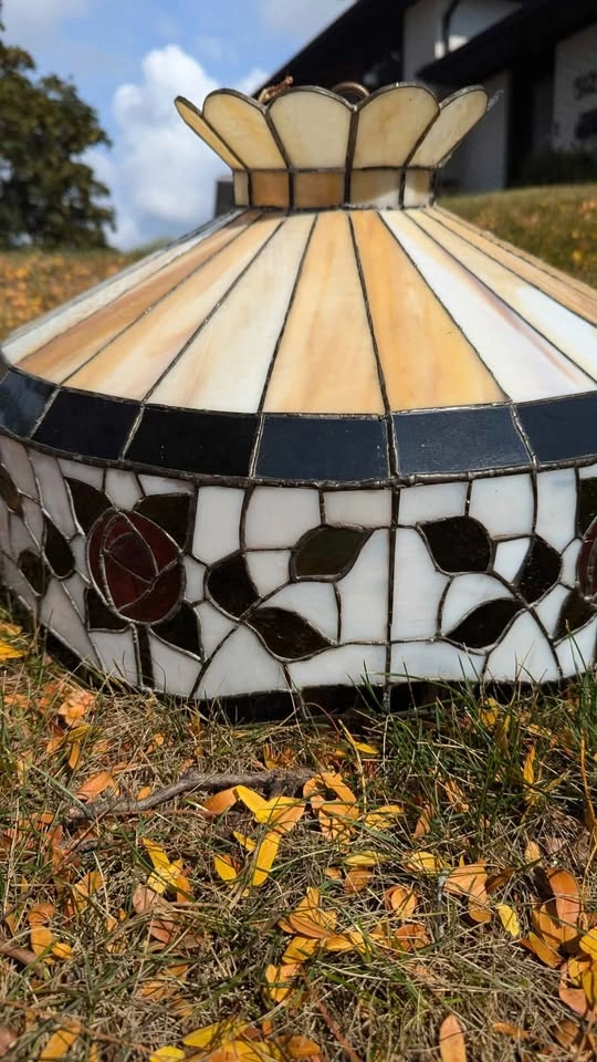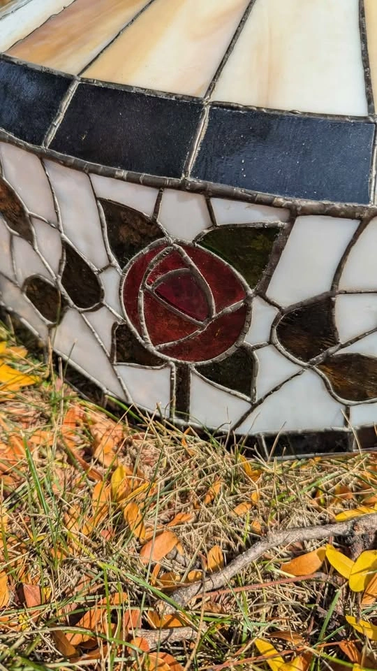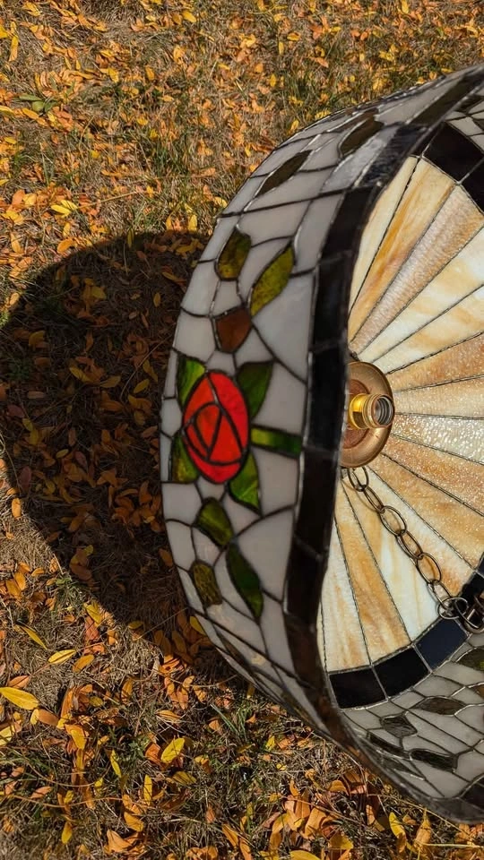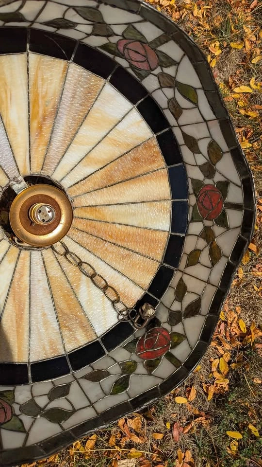 Beautiful well made Tiffany style chandelier shade + hardware as seen in photos. No chips or cracks, very sturdy and solid. Beautiful Rose design ๐น Fast pickup please! South/East Burlington ๐