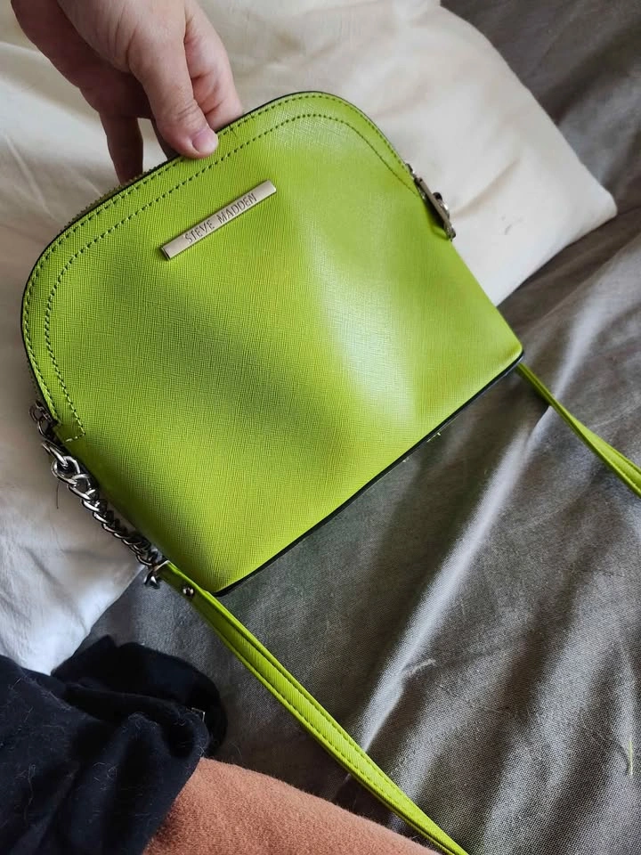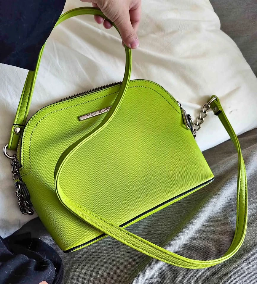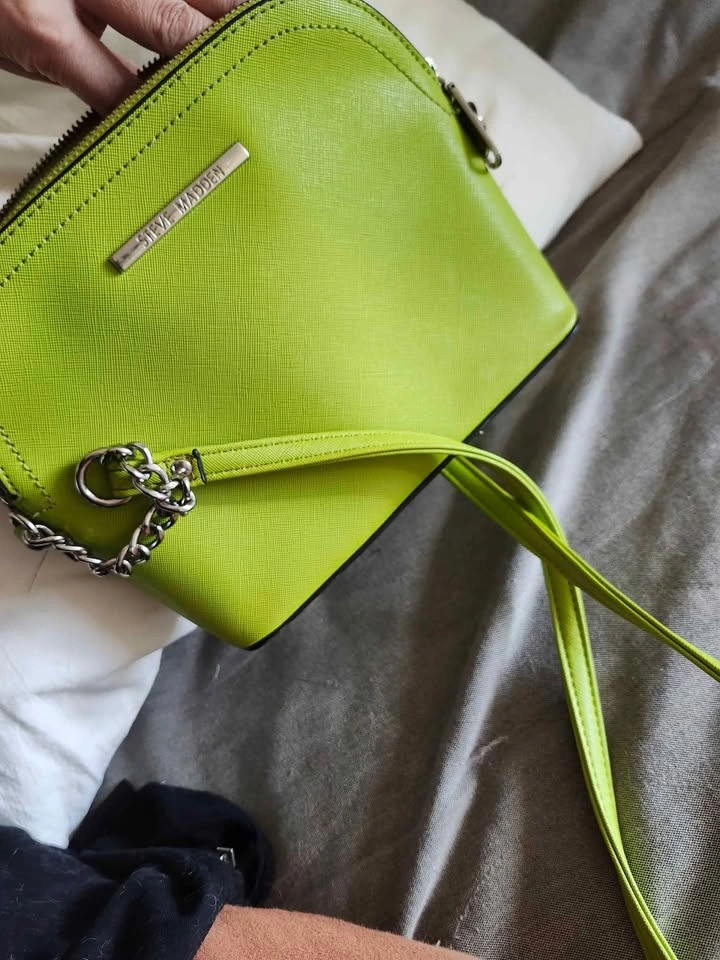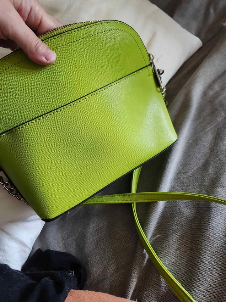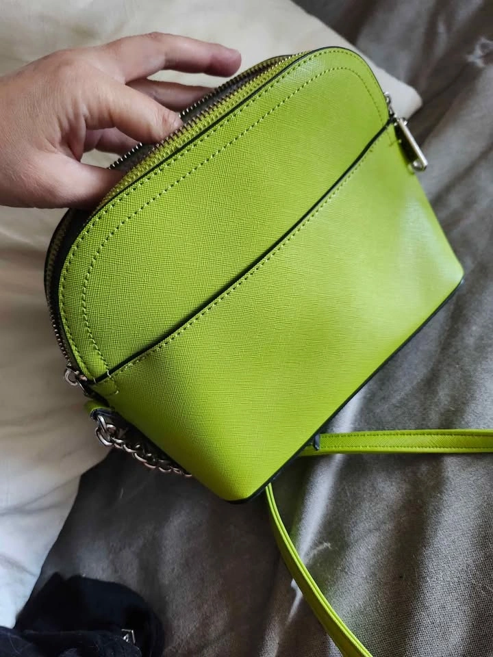 Very beautiful handbag, the color is eye catching, and pleasant for others and for yourself. Its happy and lucky color. It very easy can carry cards, money ,keys ,cell phone or even small books. Can be carry in shoulder or cross shoulder carry it.