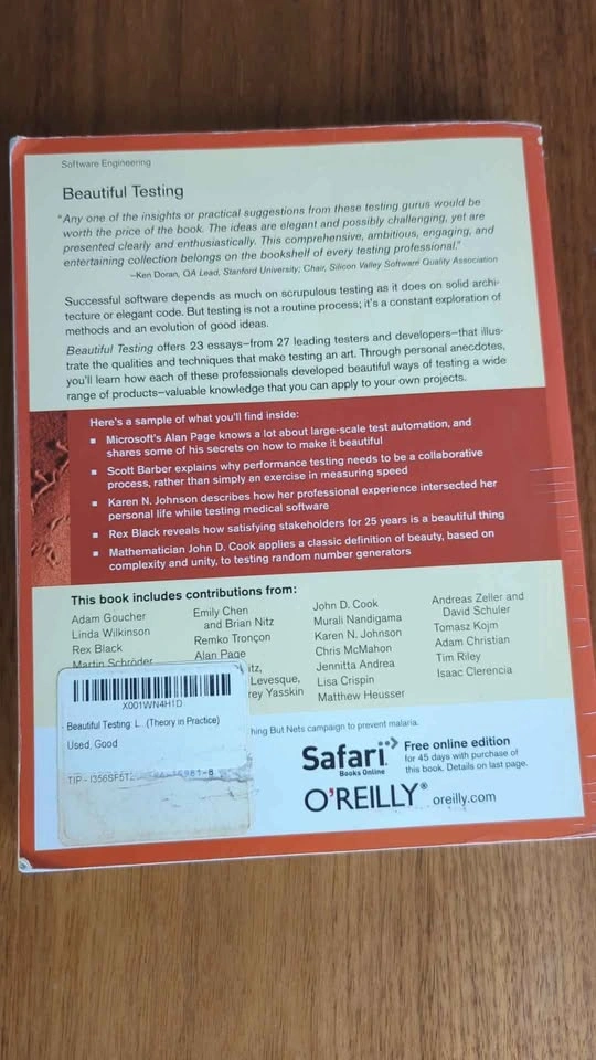 15Beautiful Testing talks about how leading professionals improve software. Note: There is some highlighting in the book. Pick up only please.